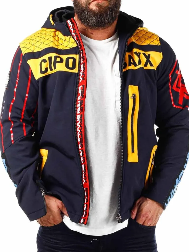 Cool Jakke Fra Cipo &Amp; Baxxlet Foret Jakke Med Et Logo Påtrykt. Den Har To Lommer Fortil Med En Lynlås, Samt En Lynlås For Enden Af Ærmerne. Den Er Designet Med En Hætte, En Ribbetave Og Cool Detaljer.