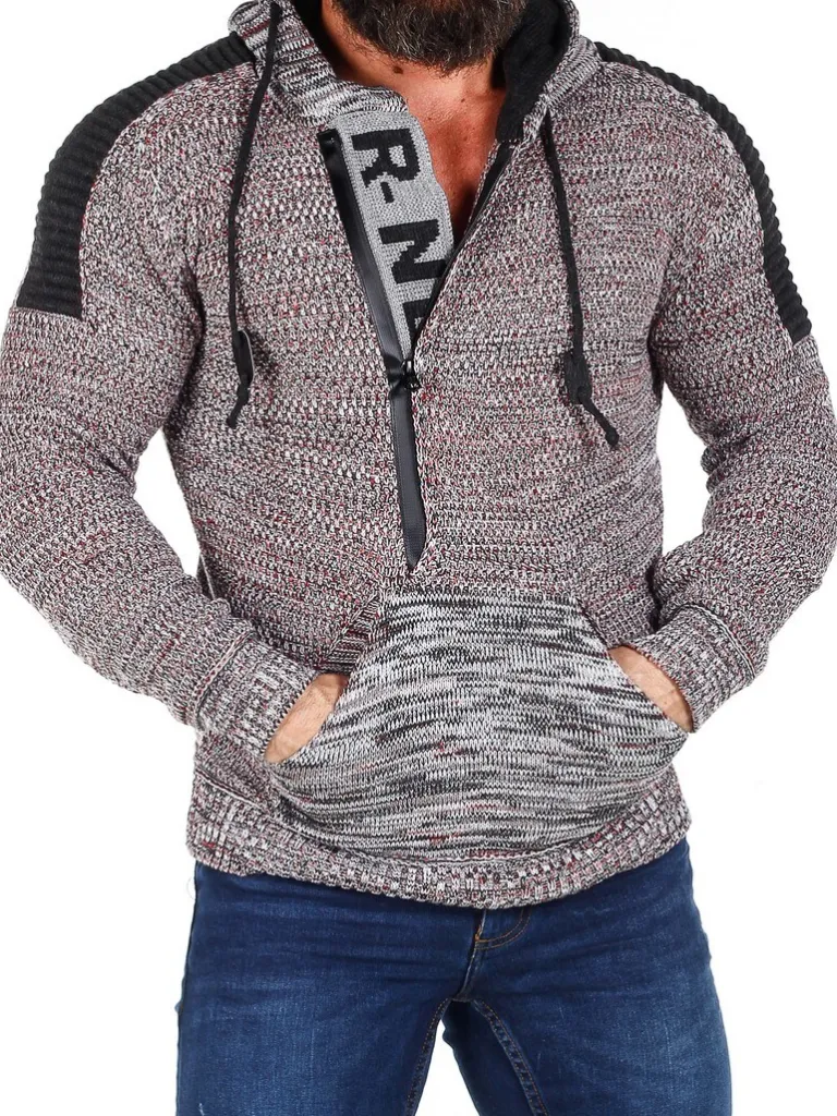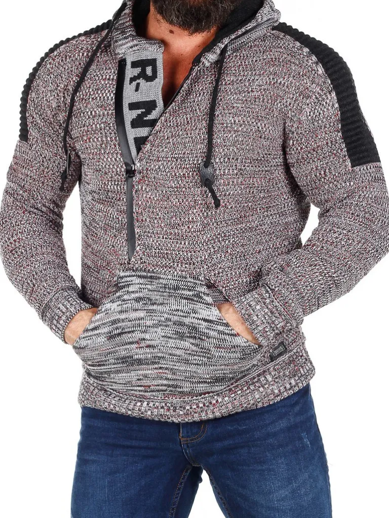 Hoddie I Et Strikket Materiale Fra Rusty Nealhættetrøje I Strik Med Stretch Og Striber Som Giver Et Maskulint Udtryk. Unik Lynlås Fortil Som Går Ned Over Brystet Og Med Skjule Bogstaver I Strik, Som Ses, Når Lynlåsen Er Åben. Tyk, Behagelig Hætte Med Snoretræk Og Gennemgående Lomme Fortil. Findes I Flere Farver!