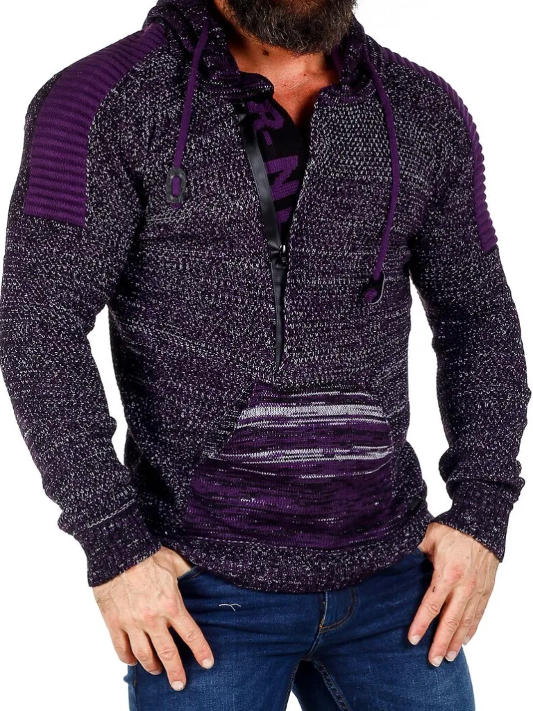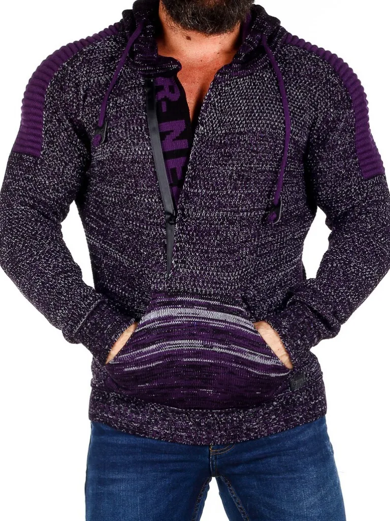 Hoddie I Et Strikket Materiale Fra Rusty Nealhættetrøje I Strik Med Stretch Og Striber Som Giver Et Maskulint Udtryk. …