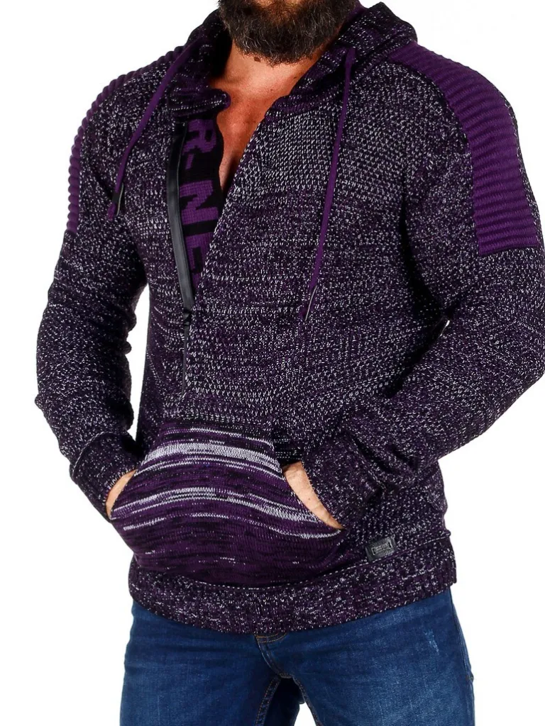 Hoddie I Et Strikket Materiale Fra Rusty Nealhættetrøje I Strik Med Stretch Og Striber Som Giver Et Maskulint Udtryk. Unik Lynlås Fortil Som Går Ned Over Brystet Og Med Skjule Bogstaver I Strik, Som Ses, Når Lynlåsen Er Åben. Tyk, Behagelig Hætte Med Snoretræk Og Gennemgående Lomme Fortil. Findes I Flere Farver!