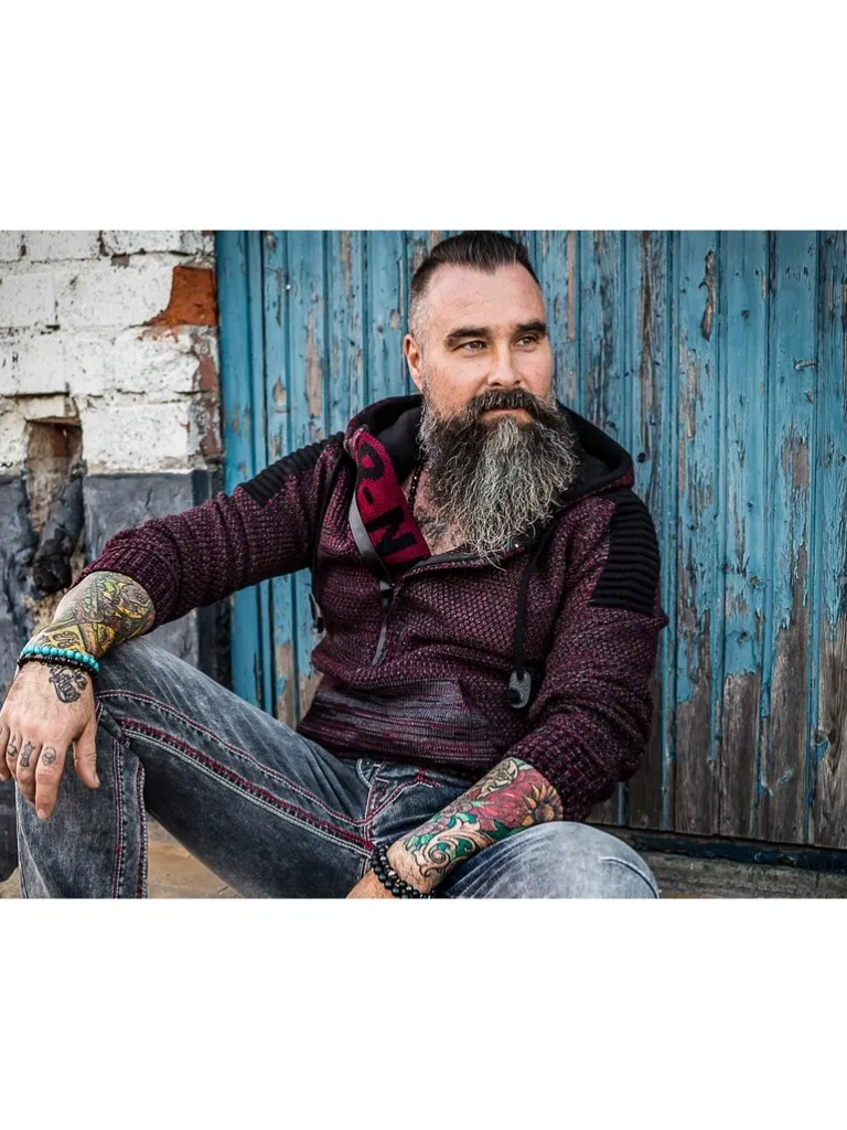 Hoddie I Et Strikket Materiale Fra Rusty Nealhættetrøje I Strik Med Stretch Og Striber Som Giver Et Maskulint Udtryk. Unik Lynlås Fortil Som Går Ned Over Brystet Og Med Skjule Bogstaver I Strik, Som Ses, Når Lynlåsen Er Åben. Tyk, Behagelig Hætte Med Snoretræk Og Gennemgående Lomme Fortil. Findes I Flere Farver!