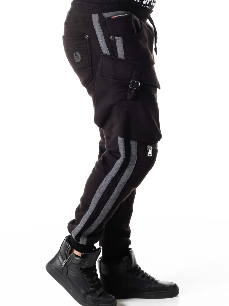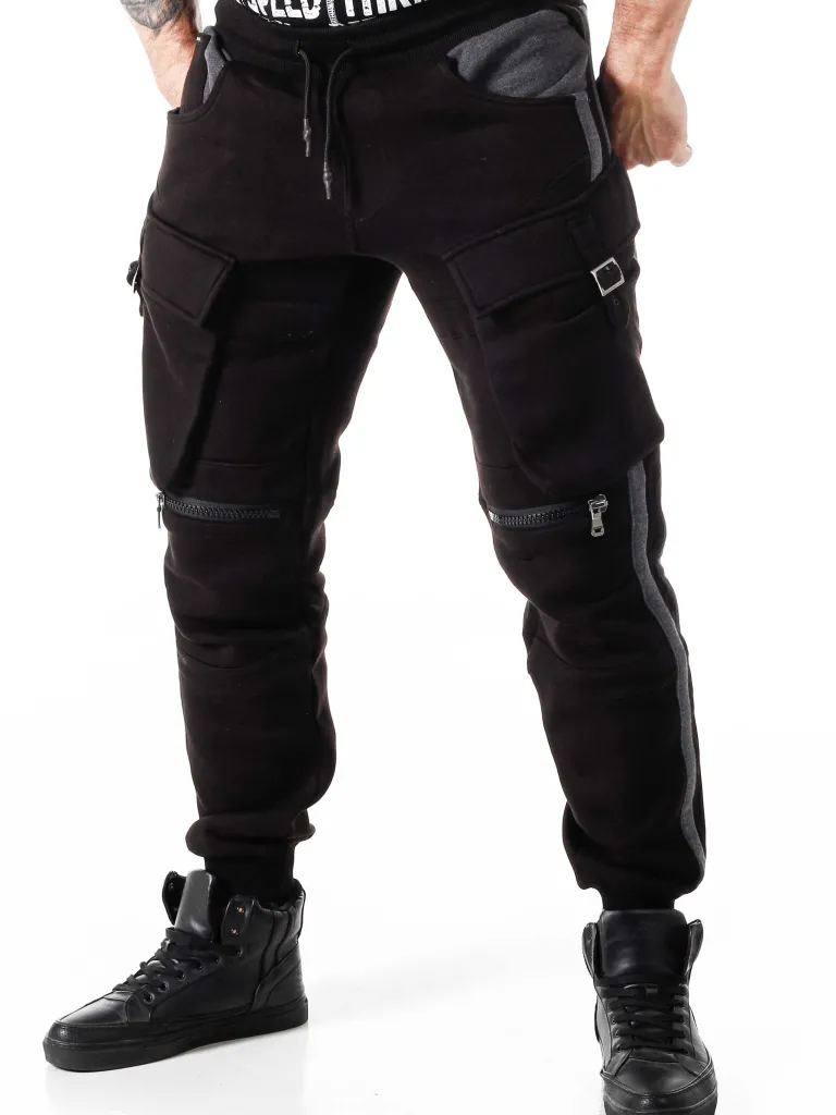 Sweatpants Med Cargolommer Fra Cipo &Amp; Baxxbukser I En Afslappet Model Med Striber I En Kontrastfarve. To Lommer Findes Fortil, To Bagpå Og Hertil Er Der To På Benene. Bukserne Er Detaljerede Med Lynlåse På Knæene.