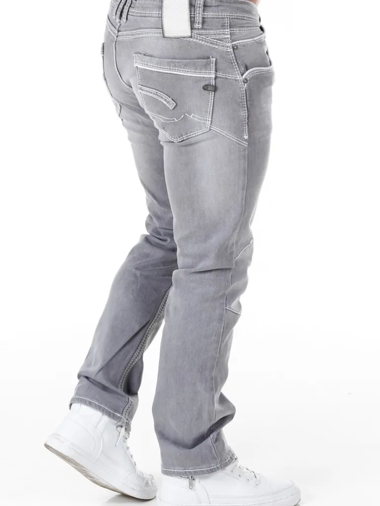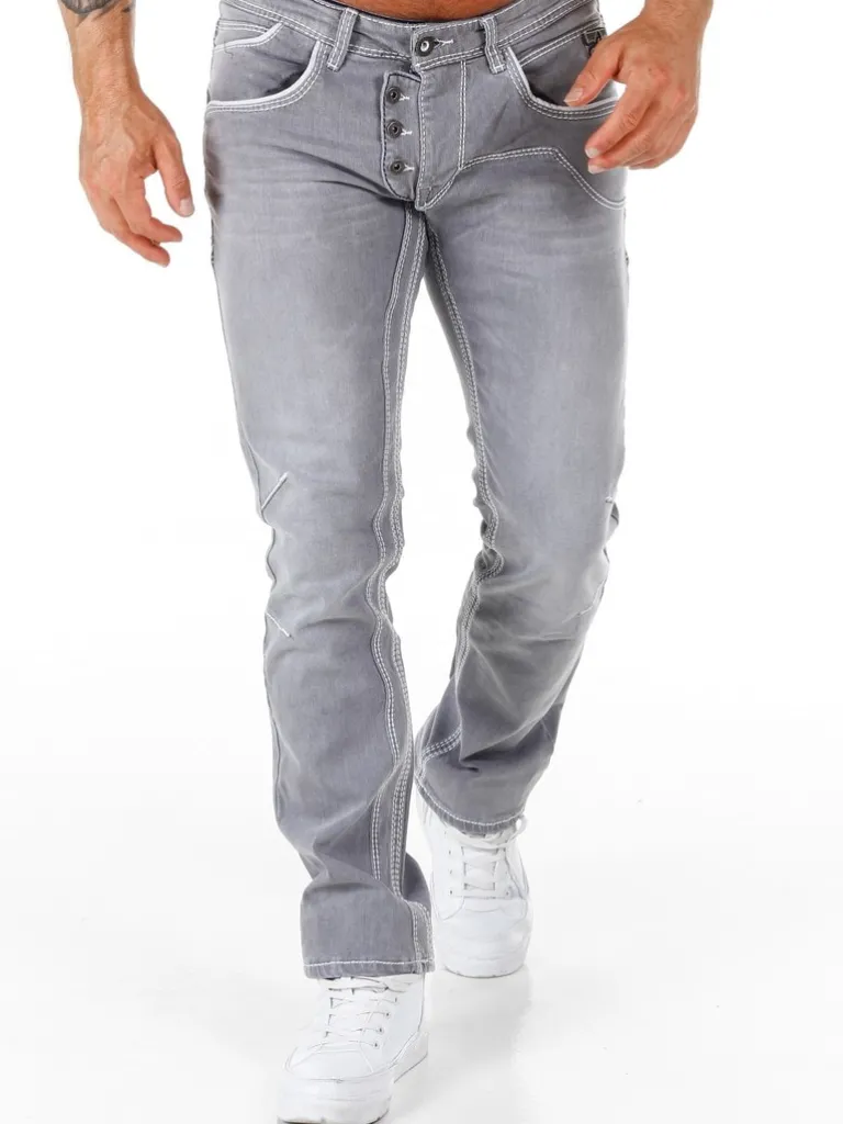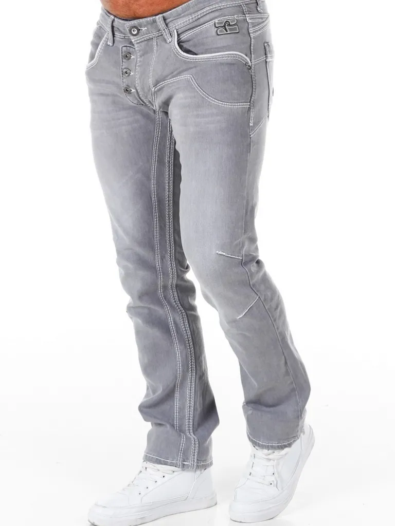 Gråa Jeans Med Markerade Sömmar Från Rusty Nealbyxor I Bekvämt Denimmaterial Som Är Något Stretchigt. 5-Ficksmodell Med Synlig Knappgylf Och Grova Sömmar I Vitt För En Unik Design.