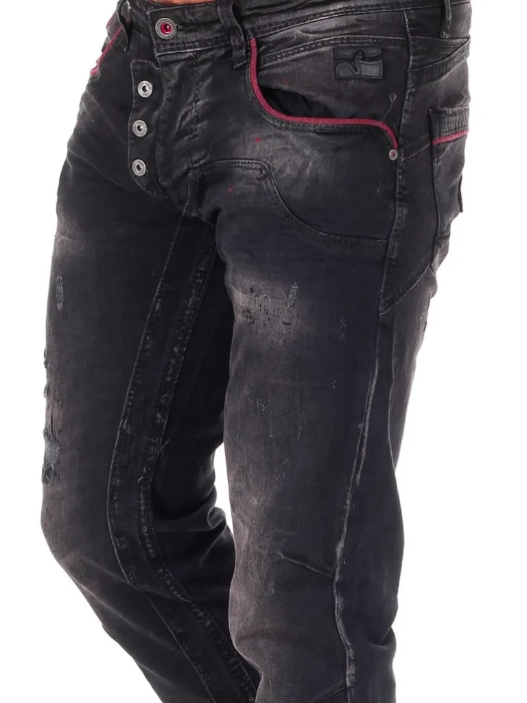 Jeans I Sort Med Markede Sømme Fra Rusty Nealbukser Med Slitager Og Lyse Partier I Et Behageligt Denimmateriale, Hvor Der Er Nkget Stræk I. Disse Bukser Kommer I En Model Med 5 Lommer, Og Der Findes Hertil En Gylp Med Synlige Knapper, Farvestænk Og Grove Sømme I Gråt For At Give Bukkserne Et Unikt Design.