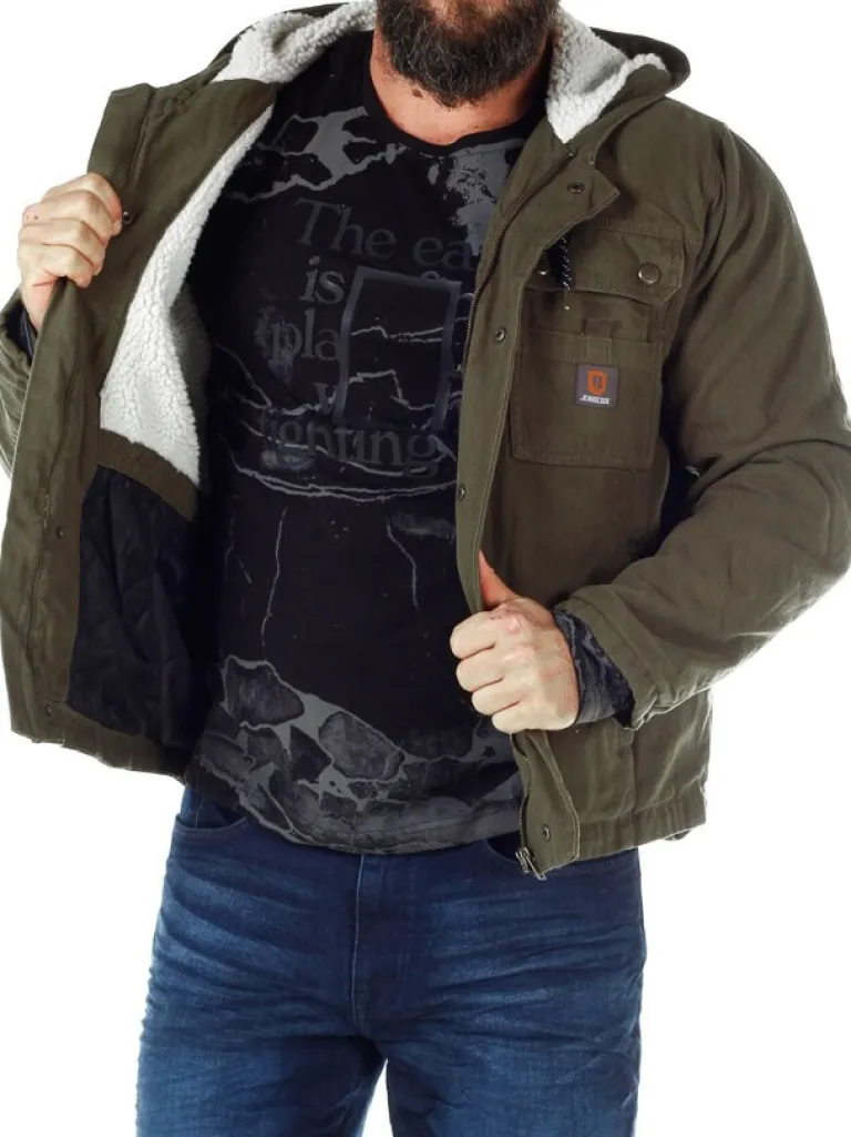 Jakke Fra Indicodetekstiljakke Med Hætte Og Teddyfor. Denne Jakke Har Flere Lommer Fortil, Der Alle Kan Lukkes. Hertil Kommer En Lomme På Indersiden. Jakken Kan Lukkes Med Både Lynlås Og Knapper.