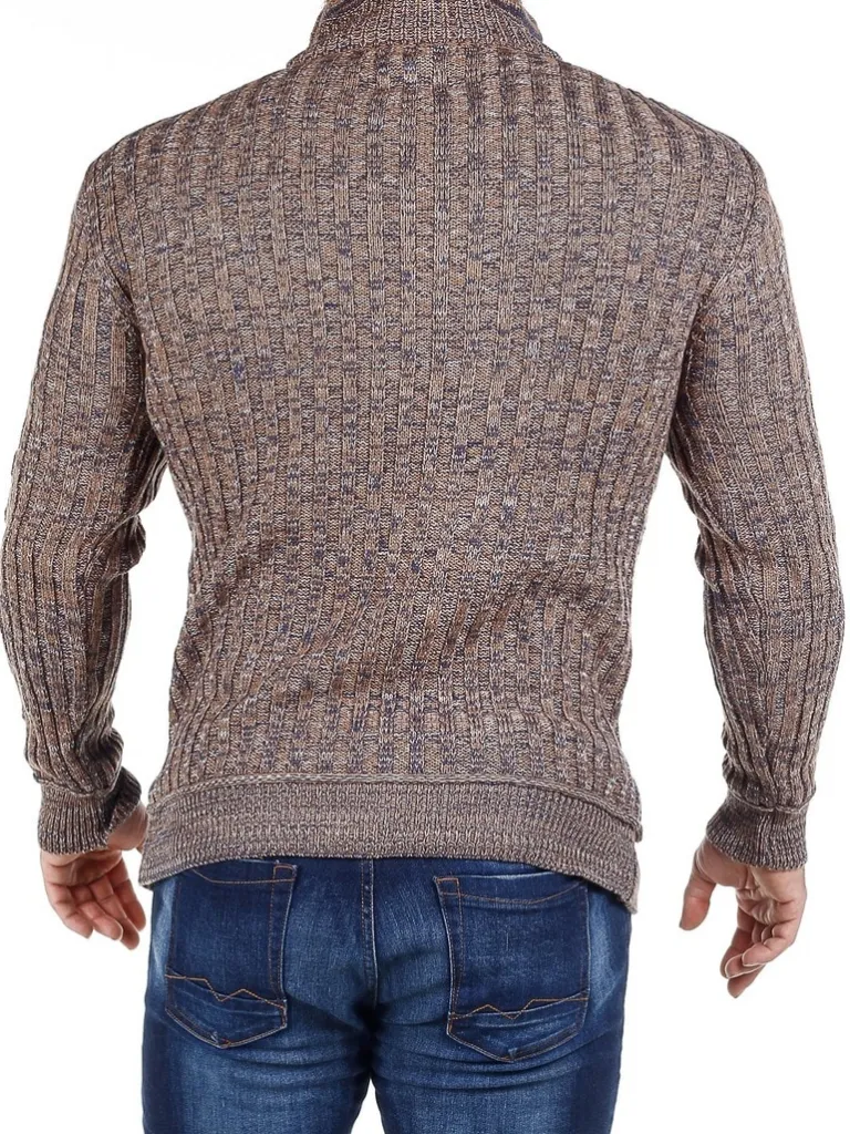 Trøje I Strikket Materiale Fra Rusty Nealhøj Hals Med Snøre Og Lynlås. Åbner Manaven Ses En Strikket Tekst Som En C…