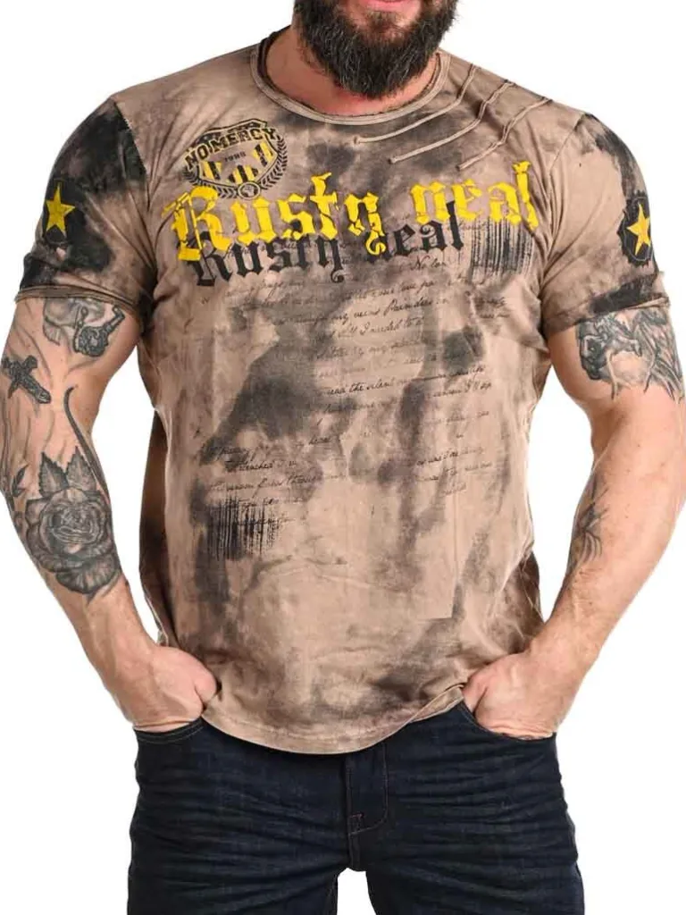 T-Shirt Med Et 3D-Tryk Fra Rusty Nealskøn T-Shirt I Et Forvasket Design Med Grove Sømme Og Tryk På Forsiden. Lige Mod…