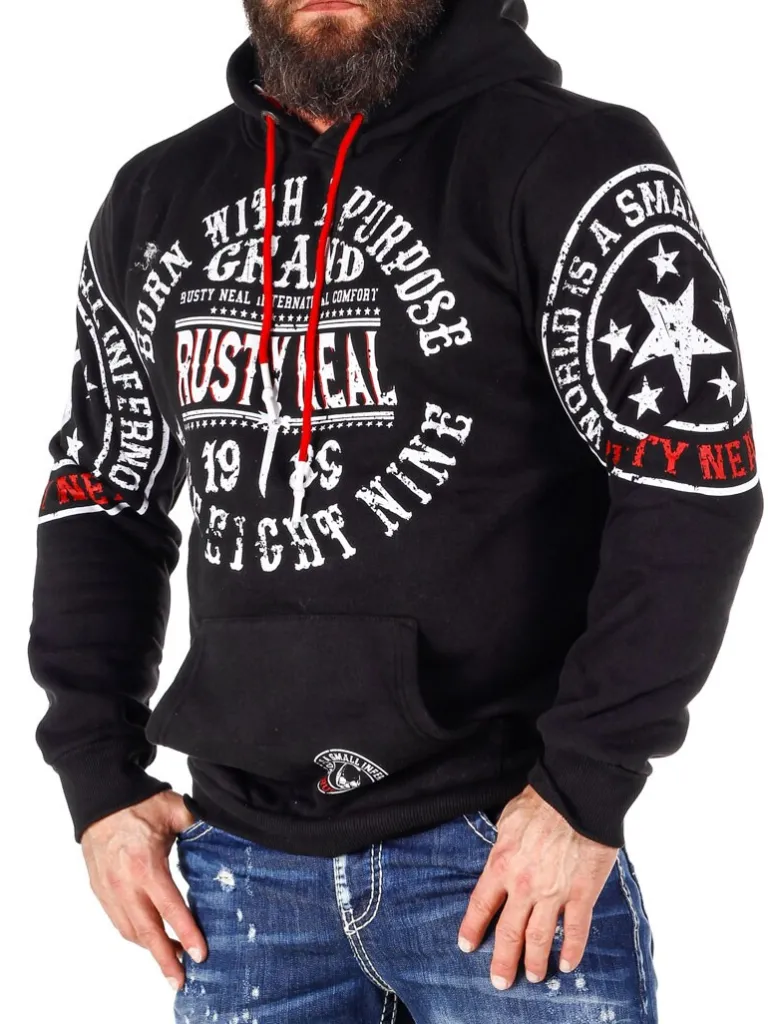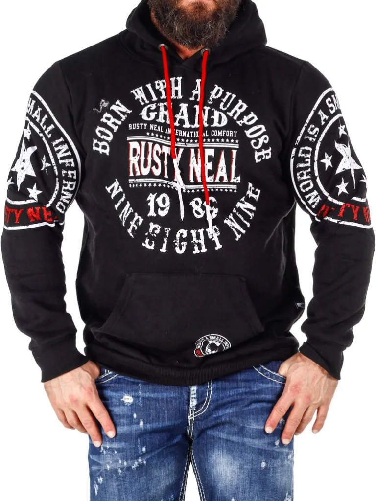 Hættetrøje Fra Rusty Nealhoodie Med Et Stort Teksttryk På Ærmerne Og Forsiden. Trøjen Har En Rummelig Hætte, Som Kan Reguleres Med En Snor, Og Desuden Findes En Stor Lomme På Maven. Findes I Flere Farver!