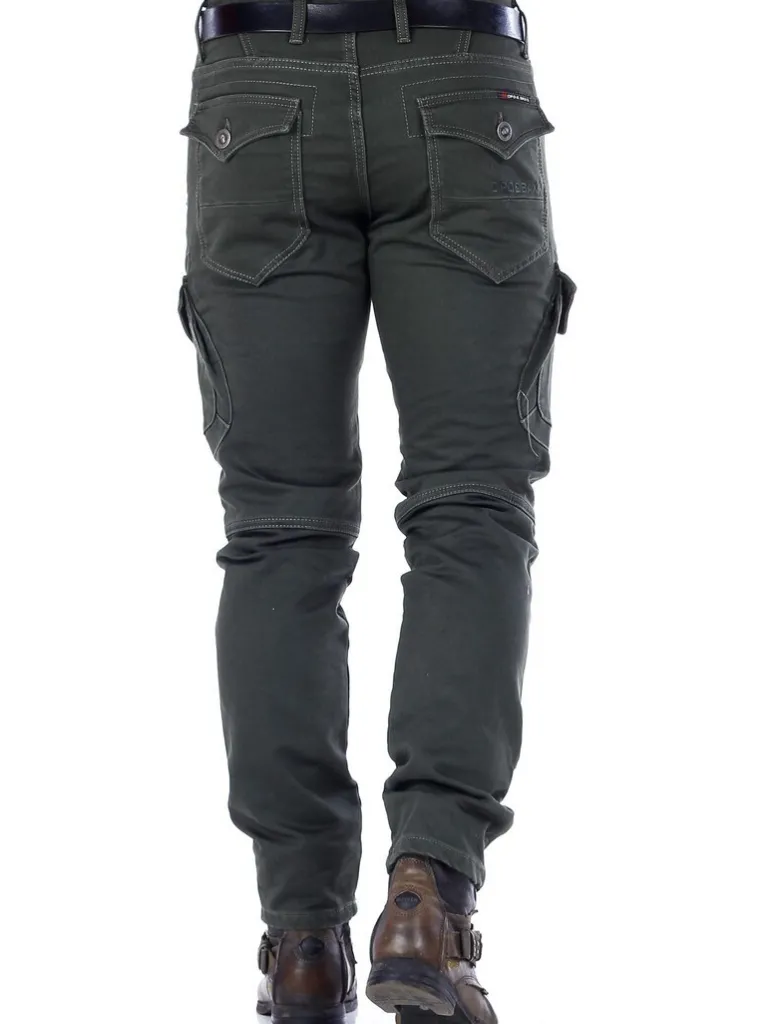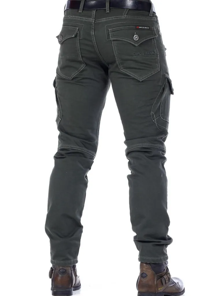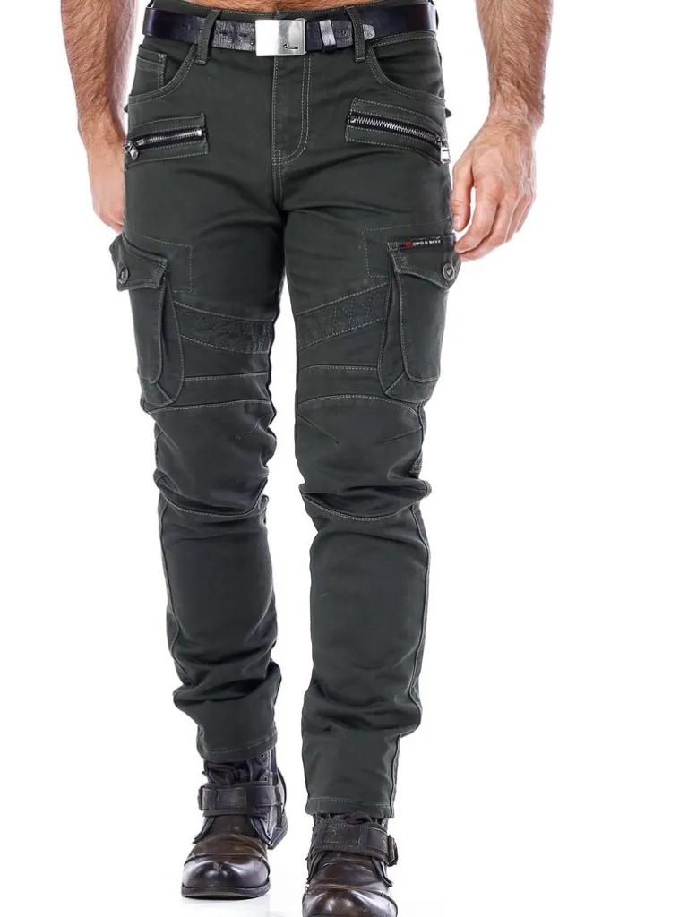 Gröna Cargobyxor Från Cipo &Amp; Baxx≪Br≫Mörkgrön Bas Med Blixtlåsdetaljer Och Dödskalleknappar I Matt Metall. Skarpa, Symmetriska Detaljer På Benen. Två Sidfickor, Två Fickor På Låren Och Två Bakfickor.