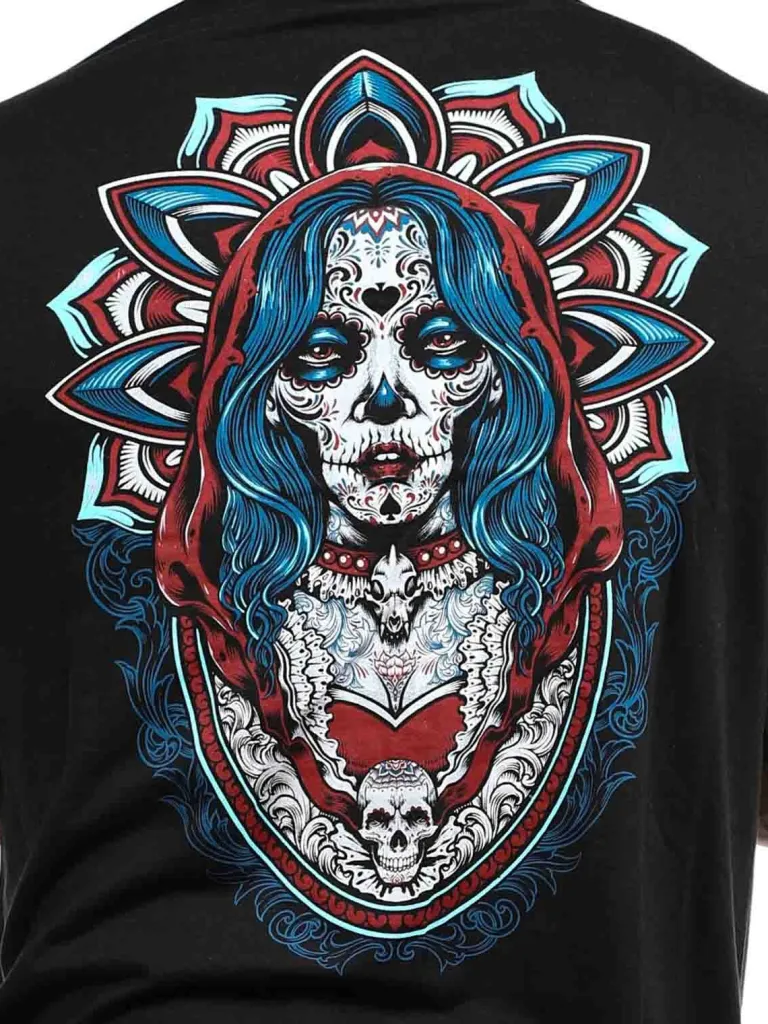 Polo Fra Hyrawhård T-Shirt Med Enave Og Knapper. Den Er Designet Med Et Logo Og Et Motiv Bestående Af Et Dødningehove…