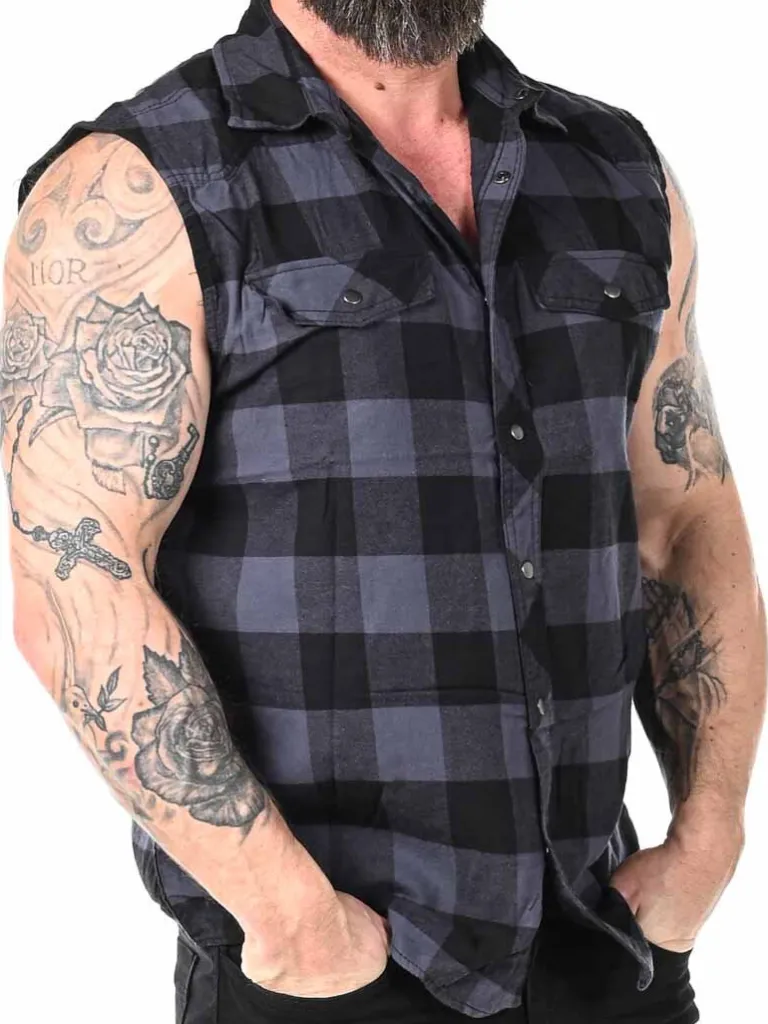 Ærmeløs Flannelskjorte Fra Branditskjorte Uden Ærmer I Et Klassiskt Flannelternet Stof. Dette Er En Lige Model Med To Lommer Fortil På Brystet. Den Lukkes Ved Hjælp Af Trykknapper.