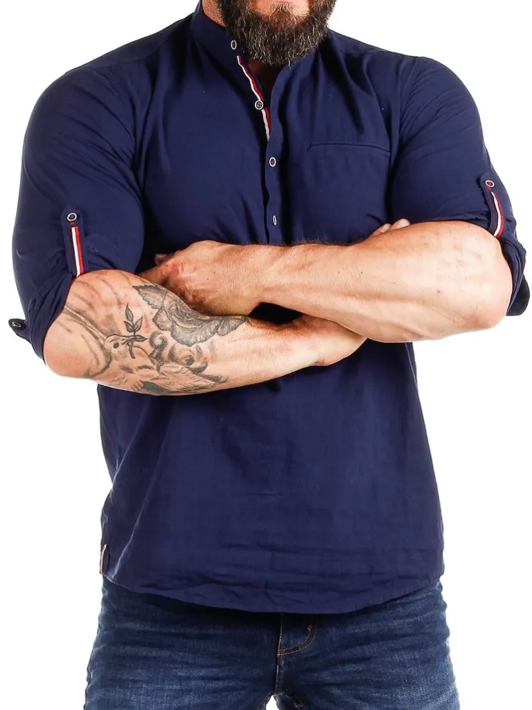 Træk-På-Skjorte I En Blanding Af Hør Fra Carismakølig Skjorte Med Lyse Knapper Og Detaljer I Rød Og Blå. Den Har E…