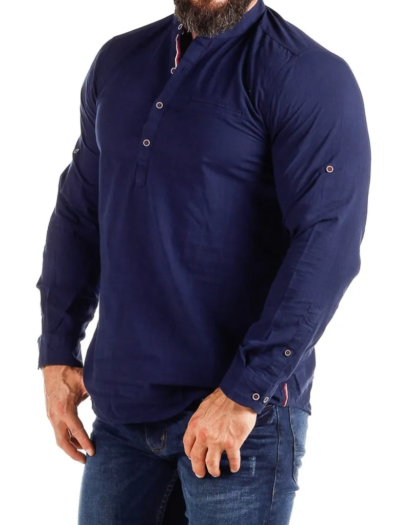 Træk-På-Skjorte I En Blanding Af Hør Fra Carismakølig Skjorte Med Lyse Knapper Og Detaljer I Rød Og Blå. Den Har E…