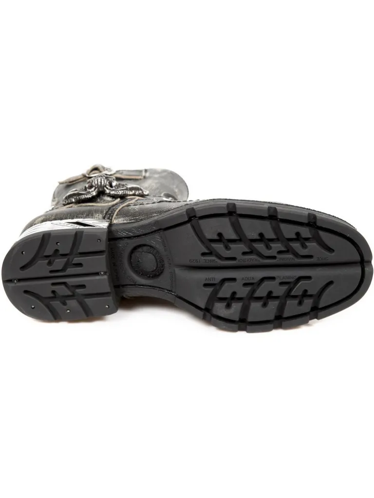 Grove Støvler I Et Hårdt Design Fra New Rockfremstillet I Et 100 % Kvalitetslæder Med En Grov Gummisål I Sort Og Detaljer I Form Af Dødningehoveder I Sølv. De Har En Smidig Lynlås På Indersiden, Som Underletter At Tage Støvlerne Af Og På. Skoene Findes I Et Begrænset Oplag, Så Sørg For At Anskaffe Dig Et Unikt Par!