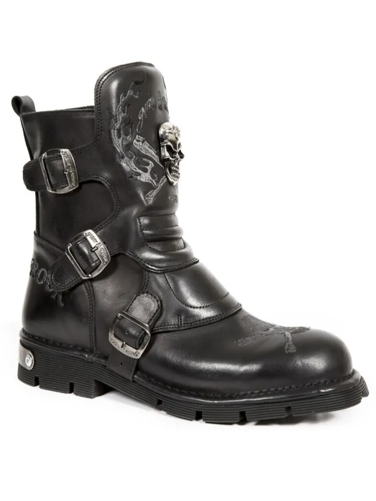 Støvler Med Dødningehoveder Fra New Rockhøje Støvler I Et Kvalitets Læder Med Enaftig Sål Og Et Råt Design. De Åbnes Og Lukkes Ved Hjælp Af Justerbare Spænder, Der Sidder På Ydersiden. Denne Unikke Sko Findes I Et Begrænset Oplag!