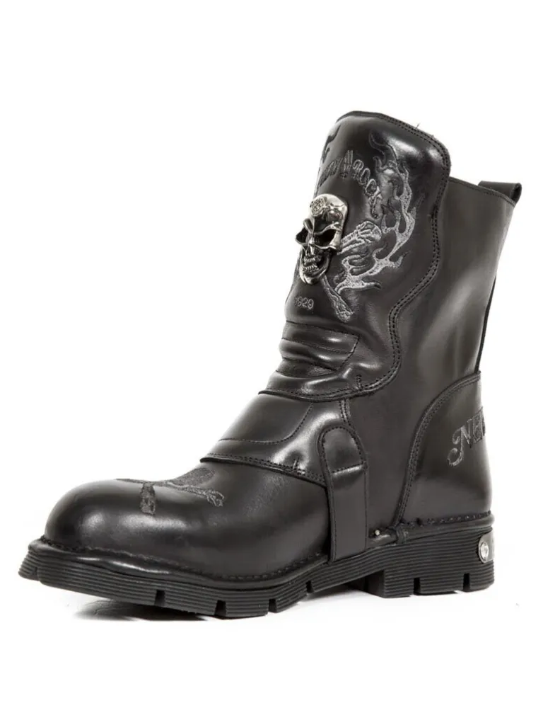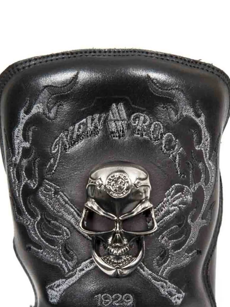 Støvler Med Dødningehoveder Fra New Rockhøje Støvler I Et Kvalitets Læder Med Enaftig Sål Og Et Råt Design. De Å…