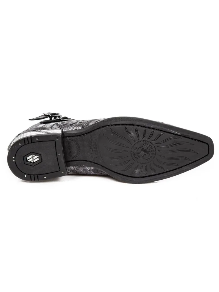 Lave Boots Fra New Rocksko I Ægte Læder Med Et Mønster, Nitter Og En Hæl I Metal. De Åbnes Og Lukkes Ved Hjælp Af Spænder I Metal, Der Sidder På Ydersiden Af Skoene. Dette Er Unikke Sko Der Kun Fremstilles I Få Eksemplarer!