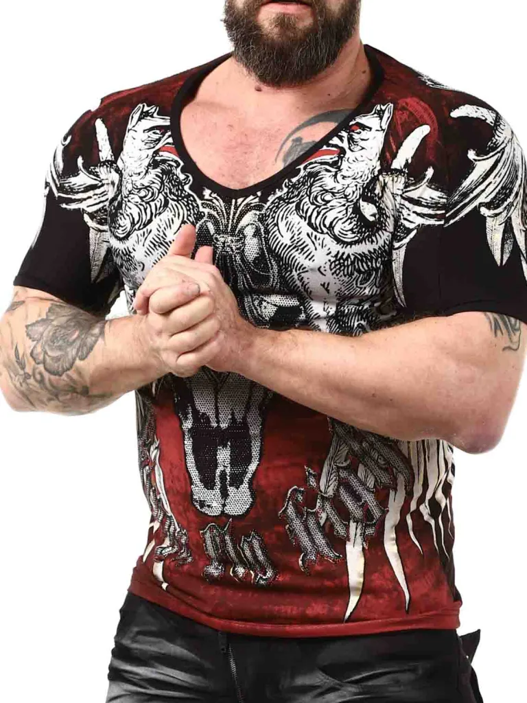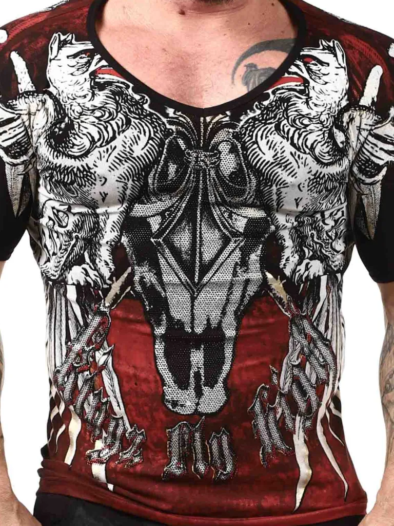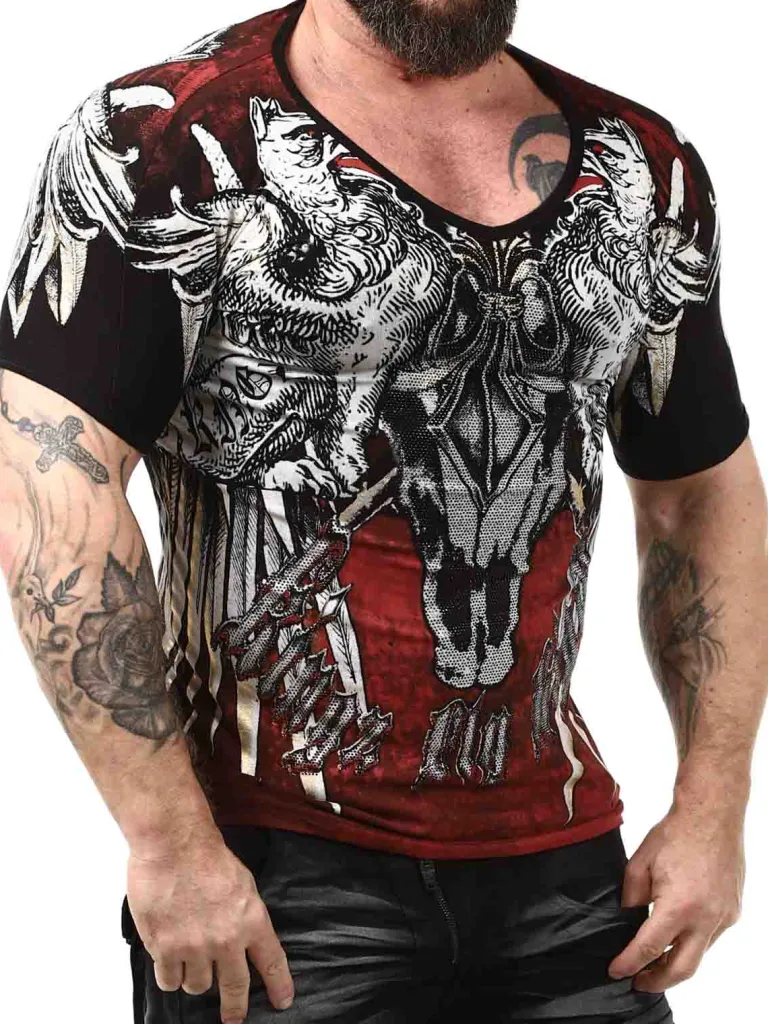 Unikt T-Shirt Fra Kingzt-Shirt Med V-Udskæring, Tryk Og Sten. Fremstillet I Et Behageligt Bomuldsmateriale Med En Slank Pasform. Denne Cool T-Shirt Er For Dig Der Vil Skille Dig Ud Fra Mængden!