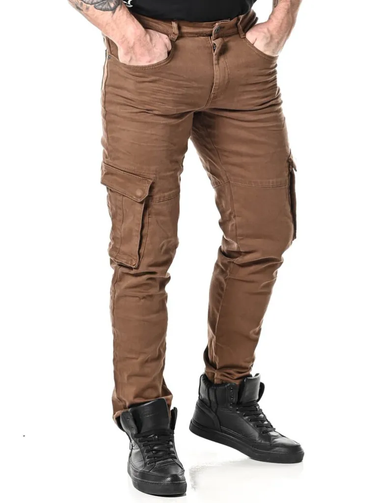 Cargojeans Fra Blendelastiske Bukser I Denim Med En Normal Højde Og Ben, Der Bliver Slankere Ned Mod Anklerne. Disse Bukser Er Designede Med Fem Klassiske Lommer Og To Lommer På Siderne, Der Begge Har Trykknapper. Det Er Flotte Bukser, Der Passer Rigtig Godt Til Hverdag Som Til Fest!