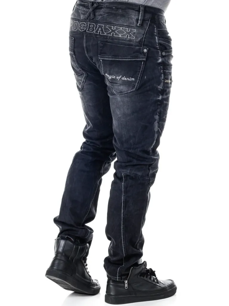 Svarta Jeans Med Grå Sömmar Från Cipo &Amp; Baxxstretchiga Jeans Med Framträdande Sömmar Och Fickor Med Grova Dragk…