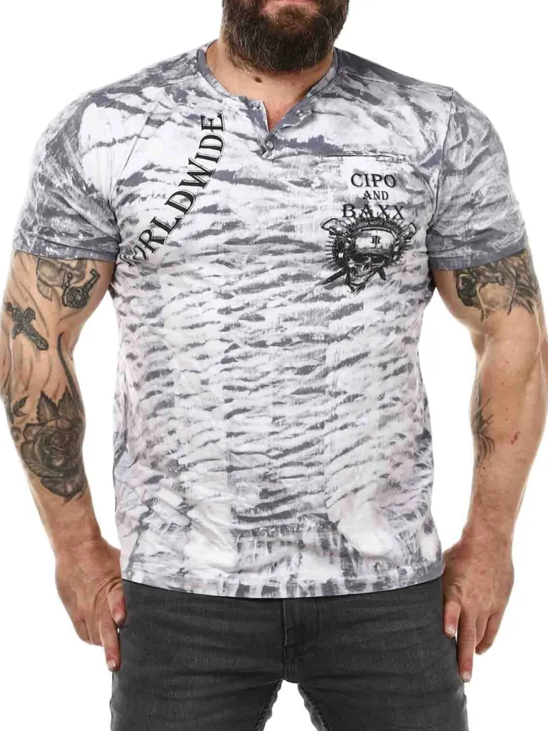 Mønstret T-Shirt Fra Cipo &Amp; Baxxt-Shirt Med Et Mønster Og Tryk I Et Råt Design. Den Har En V-Udskæring I Halsen, Hvor Der Også Findes Knapning Samt En Snydelomme På Brystet. Dette Er En Elastisk Model I Et Blødt Bomuldsmateriale.