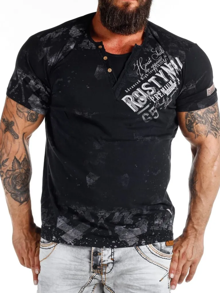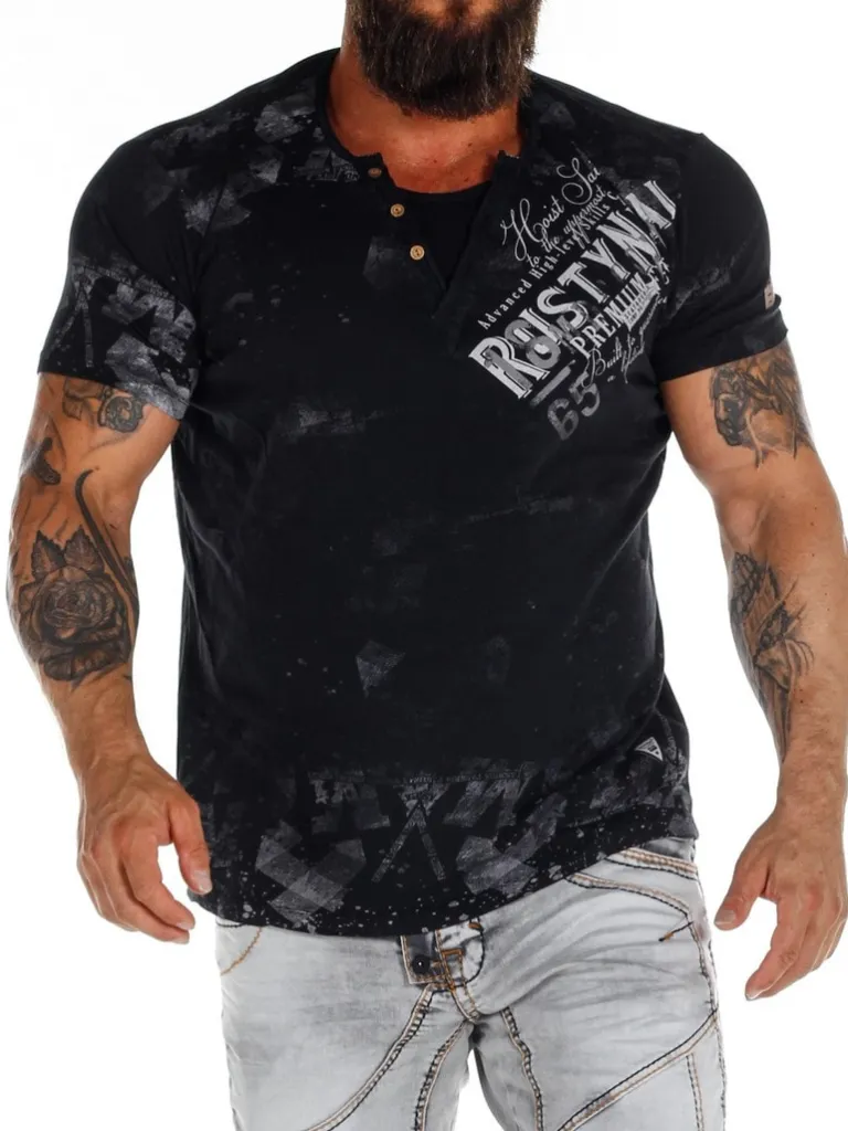 T-Shirt Med Effekter Og Knapper Fra Rusty Nealmønstret T-Shirt Detaljeret Med Knapper Ved Halsen, En Lap I Stof Med Et …