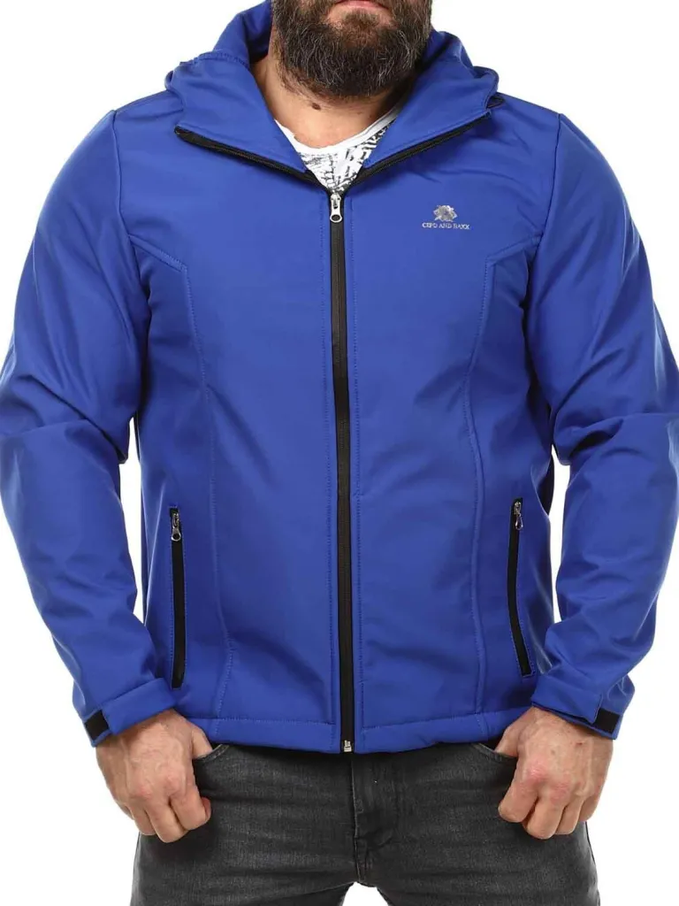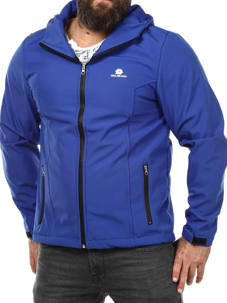 Softshelljakke Fra Cipo &Amp; Baxxvind- Og Vandafvisende Jakke Med Varmende Fleece På Indersiden. Den Har En Hætte Med En Lukkemekanisme Samt To Lommer Fortil, Begge Med En Lynlås. Den Er Justérbar For Enden Af Ærmerne.