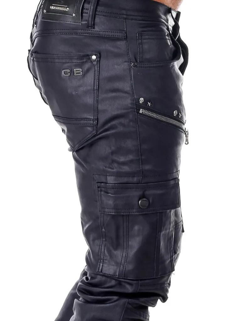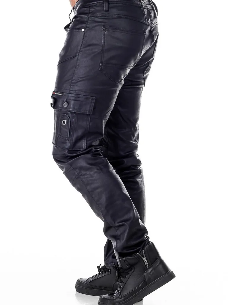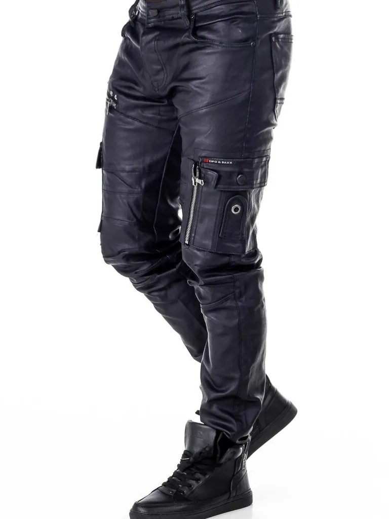 Hårde Jeans Fra Cipo &Amp; Baxxbukser I En Sort Bomuldsblanding Med En Olieskinnende Overflade, Skindimitation Og Grove…