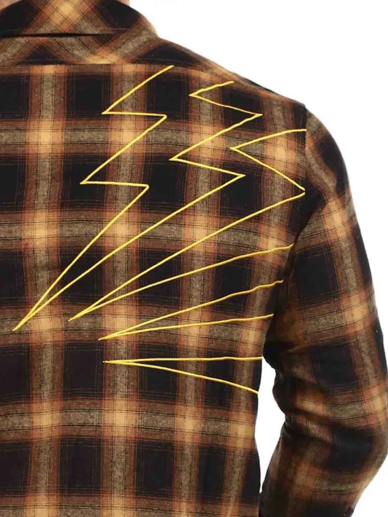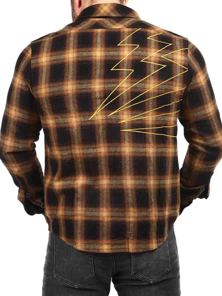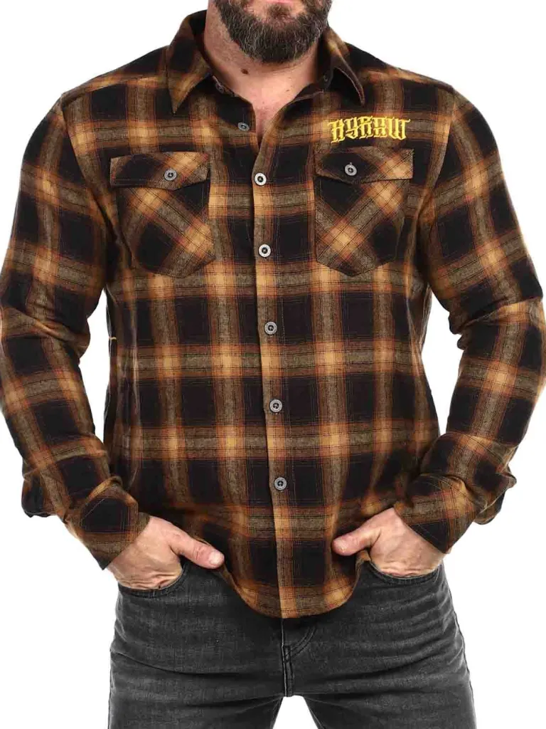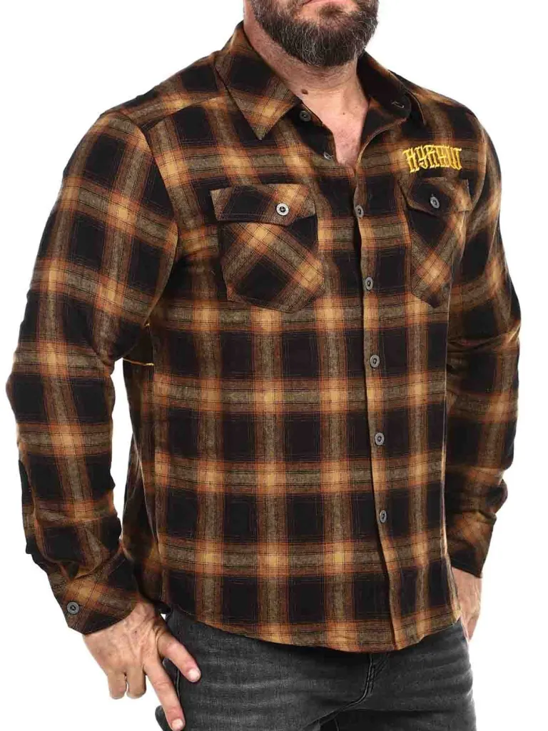 Skjorte Fra Hyrawternet Skjorte I Orange-Brune Toner. Den Har Enave Og To Lommer På Brystet, Der Begge Har En Knap. Denne Skjorte Er Detaljeret Med Et Logo Der Er Broderet Ind Fortil På Brystet Og Lyn Bagtil.