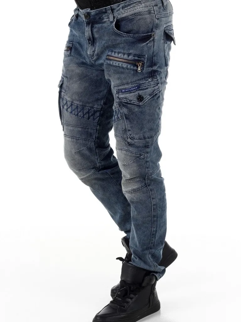 Ternede Jeans Med Cargolommer Fra Cipo &Amp; Baxxbukser Med Stretch I Og Grove Sømme, Lynlåse, Mønster Og Slitager I …