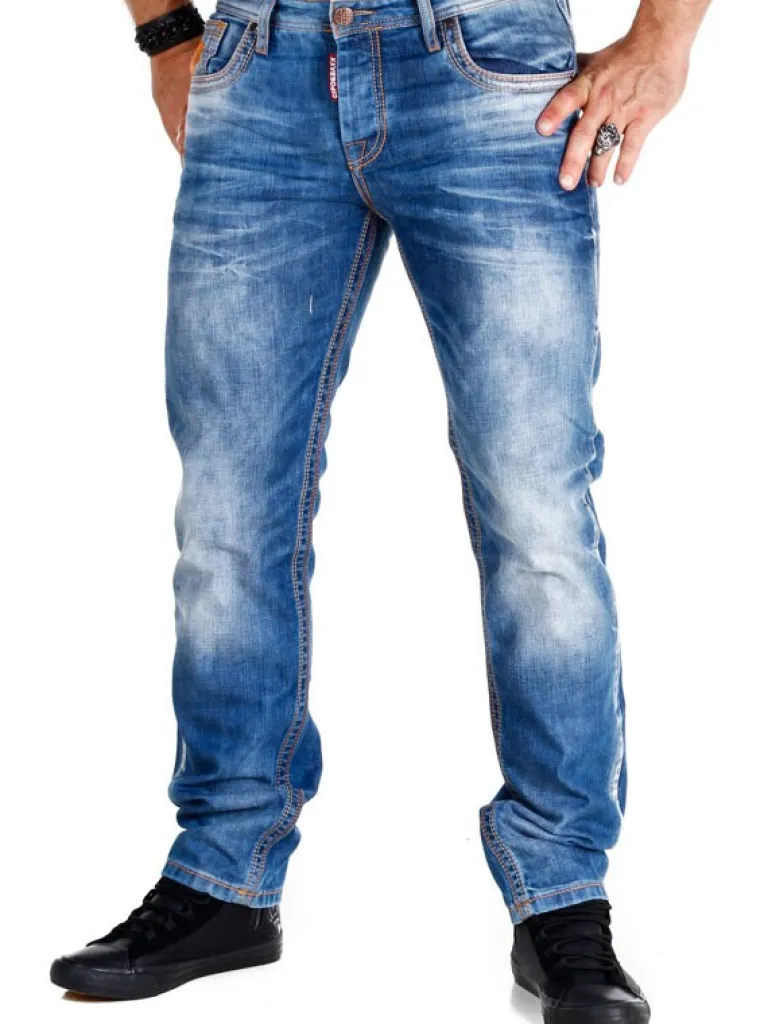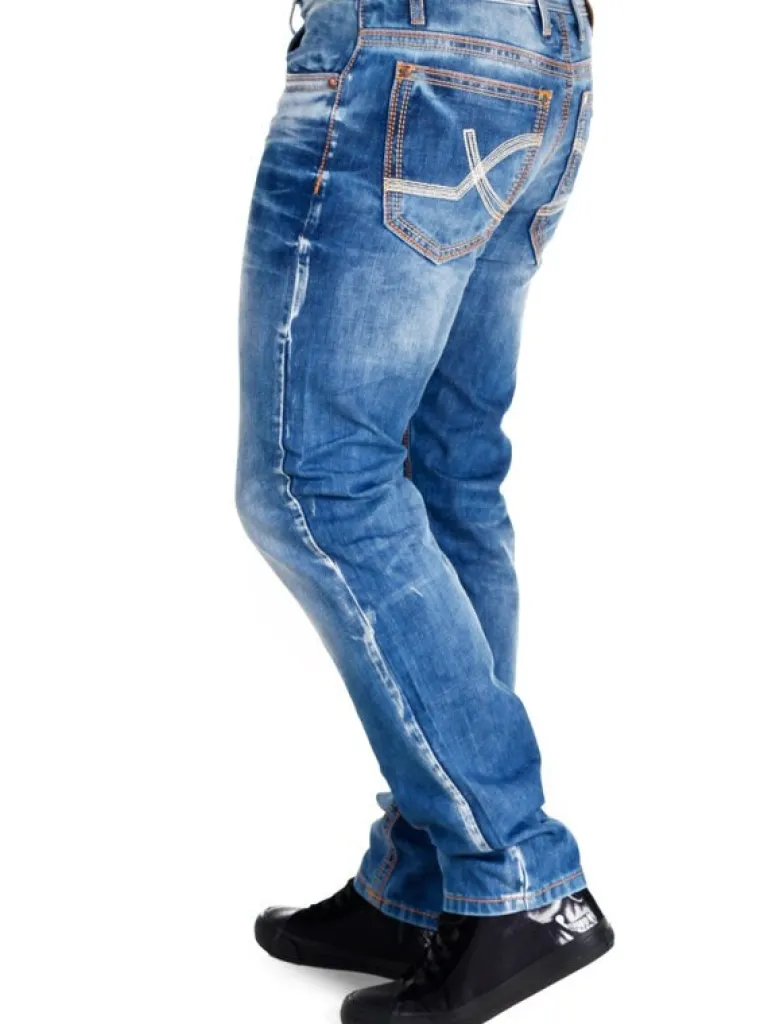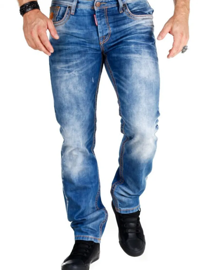Basic Jeans Fra Cipo &Amp; Baxxbukser I En Stenvasket Denim Med Markerede Sømme. Dette Er En 5-Lommers Model Med Et Skræddersyet Logo. De Er Fremstillet I En Slidstærk Bomuld.