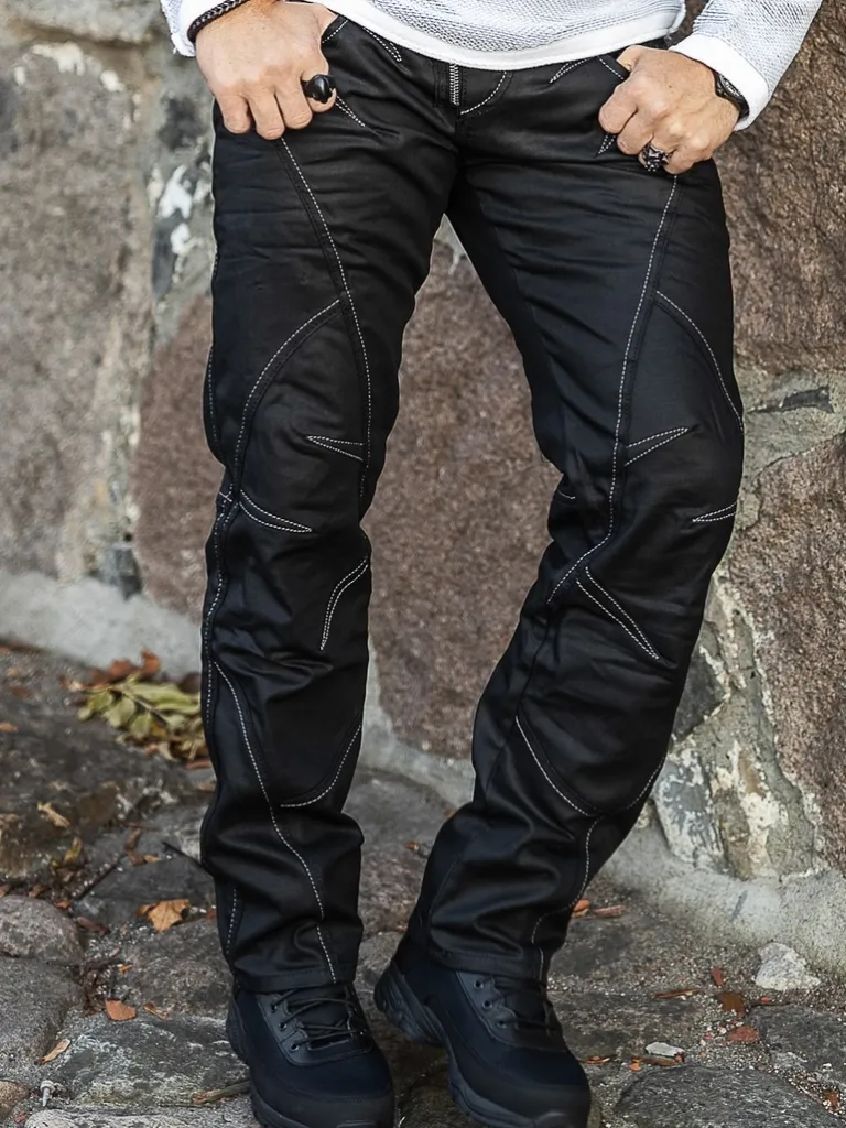 Lækker Jeans Med Frækt, Særpræget Design. Sort Stonewashed Stof Med Hvide Kontrastsømme I Skarpt Design. Fremstille…