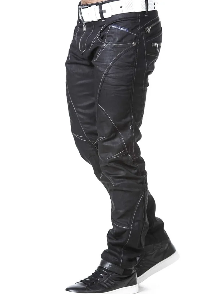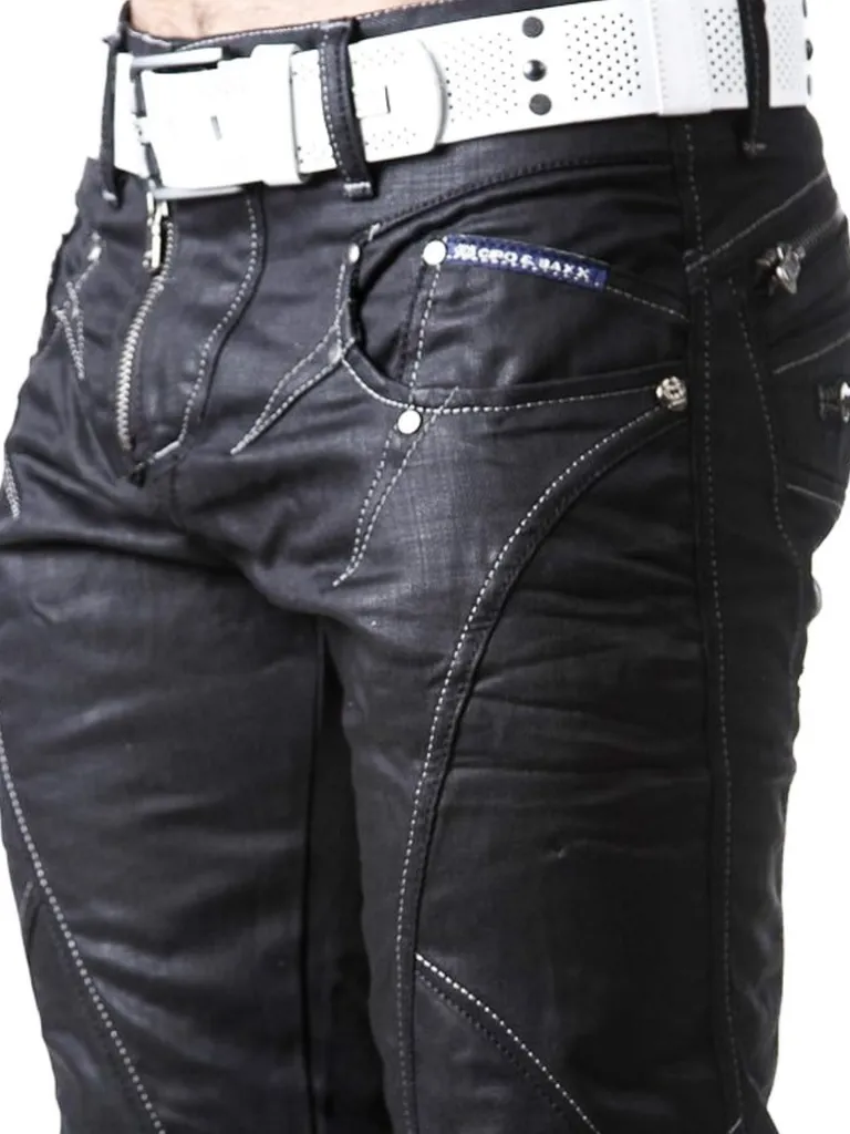 Lækker Jeans Med Frækt, Særpræget Design. Sort Stonewashed Stof Med Hvide Kontrastsømme I Skarpt Design. Fremstillet I 100% Behagelig Bomuld I Pæn Pasform. Cipo Baxx