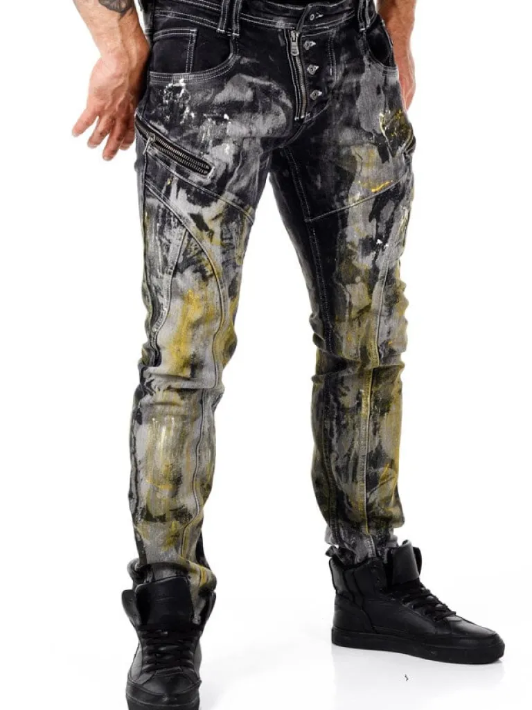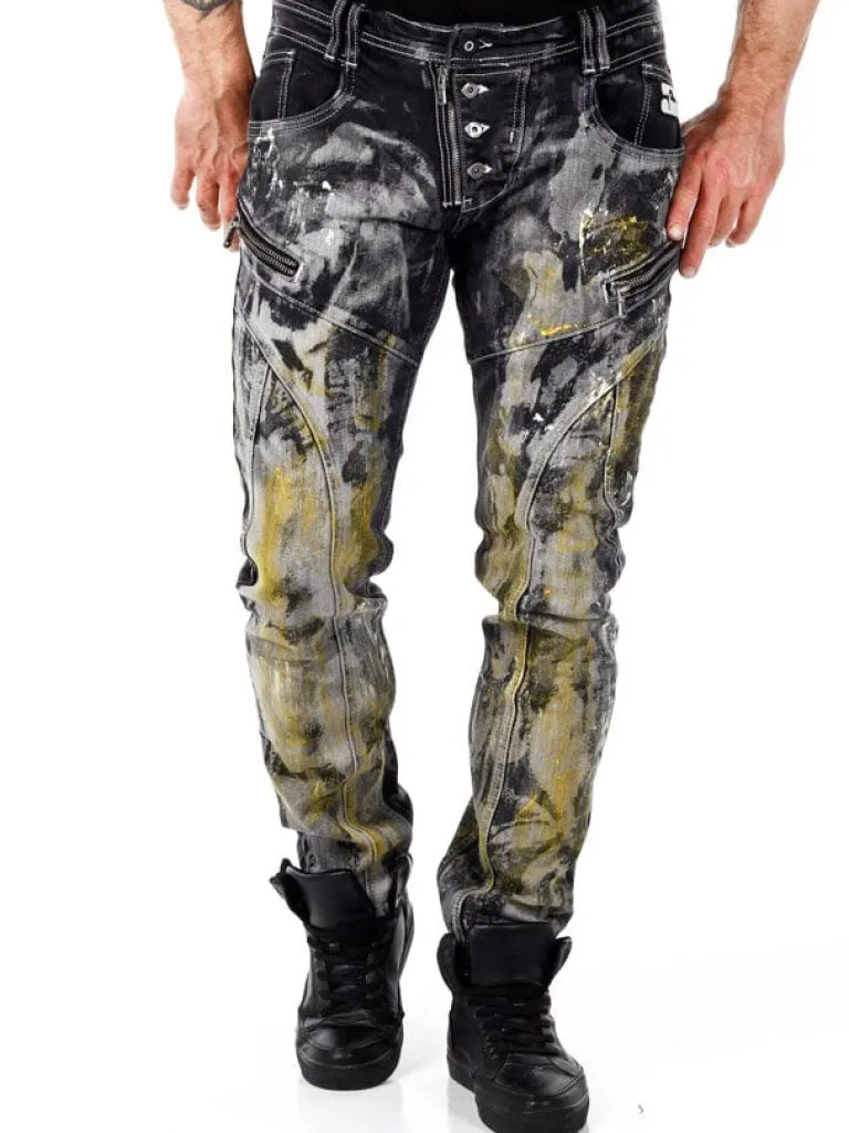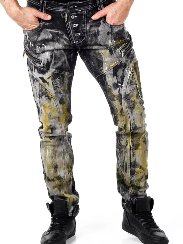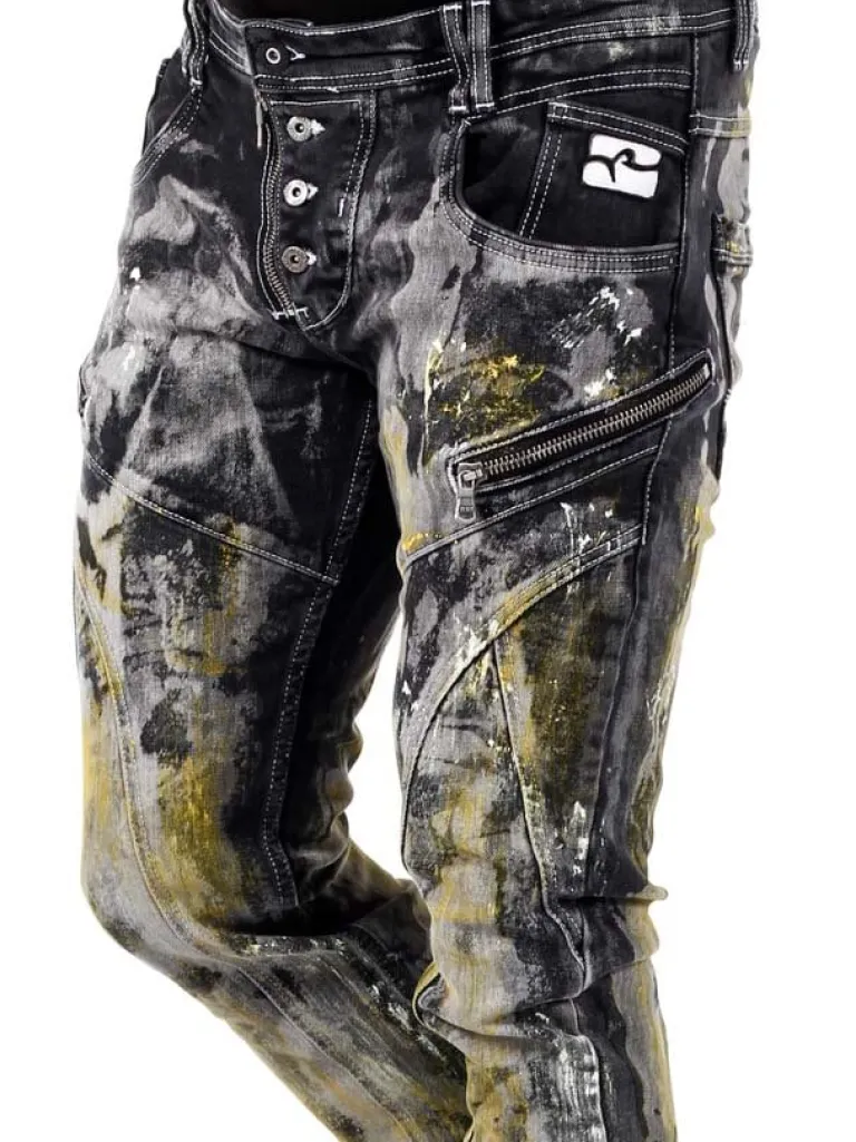 Fräcka Jeans Från Rusty Nealbyxor I Stretchig Denim Med Unik Design. Slim Fit-Modell Med Fyra Framfickor Och Två Bakfickor. Dragkedja Och Knappar I Gylfen.