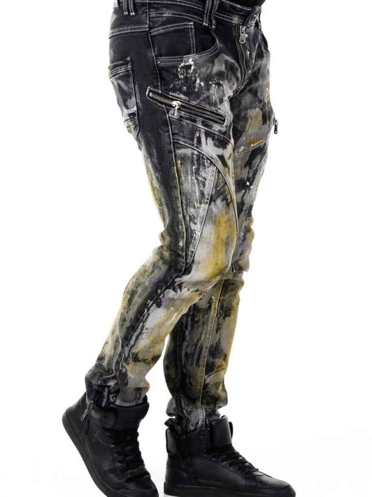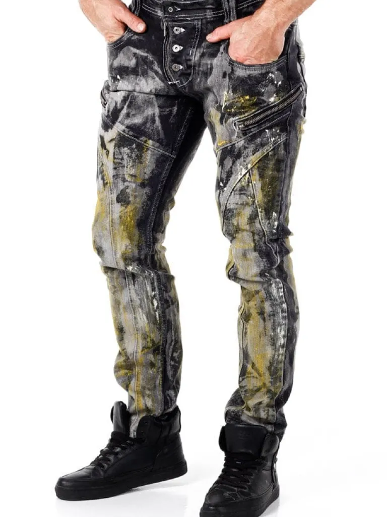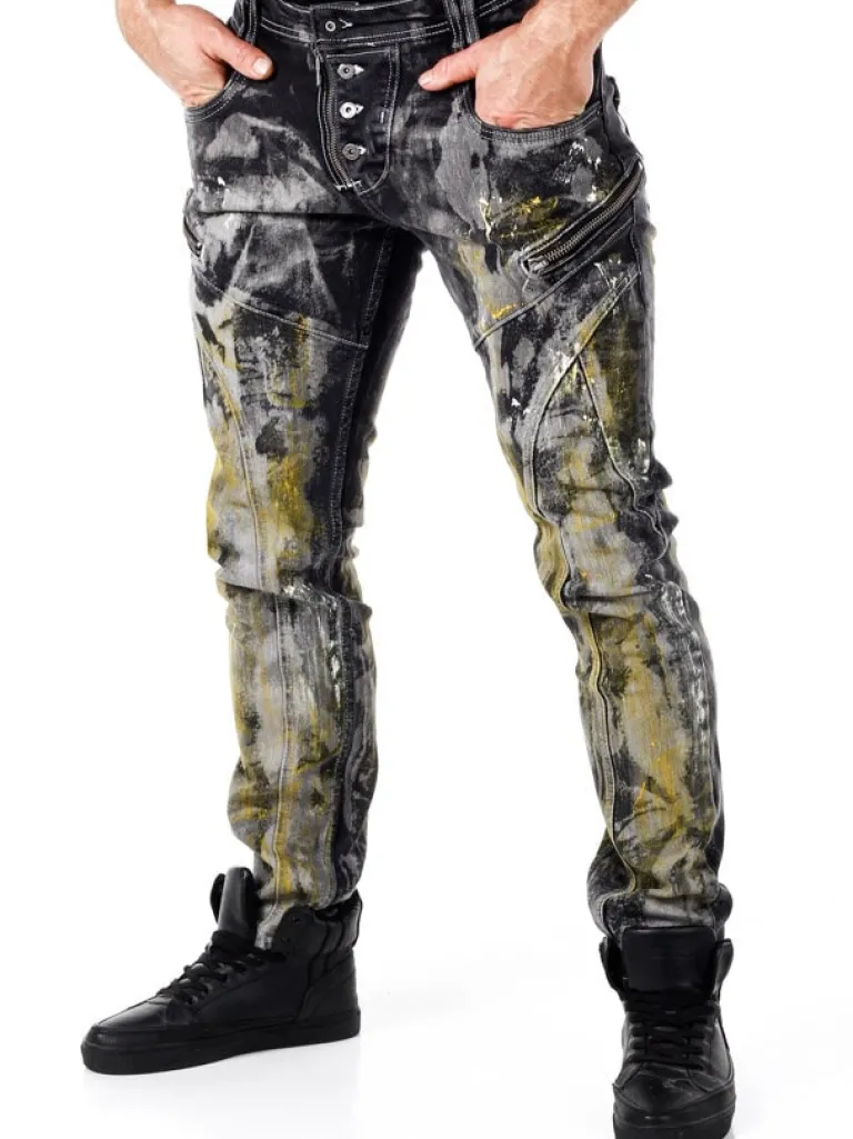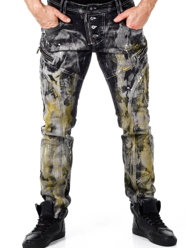 Fräcka Jeans Från Rusty Nealbyxor I Stretchig Denim Med Unik Design. Slim Fit-Modell Med Fyra Framfickor Och Två Bakfickor. Dragkedja Och Knappar I Gylfen.