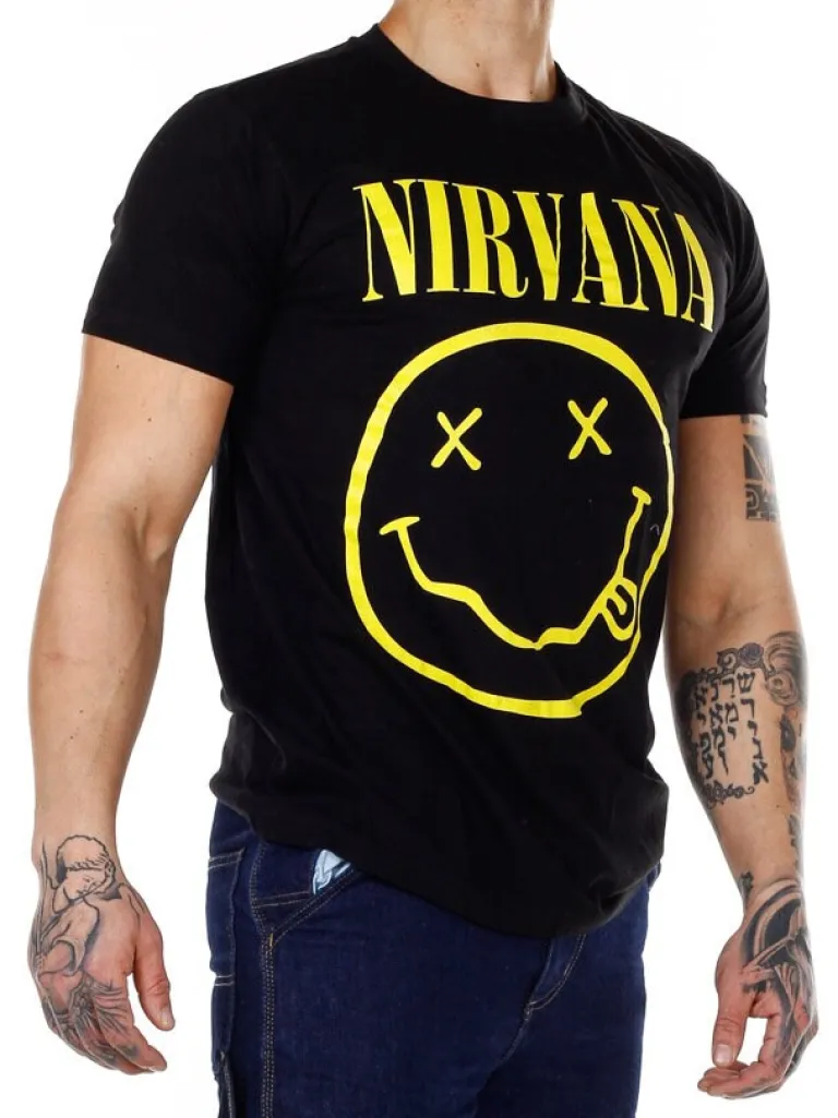 Nirvana T-Shirtsort T-Shirt I En Blød Bomuld Med Et Klassisk Tryk Fortil Med Nirvana. Elastisk Model Med En Afrundet Åbning I Halsen. Den Er Perfekt Til Dig, Der Elsker Nirvana Eller Som Blot Leder Efter En Flot Og Cool T-Shirt!