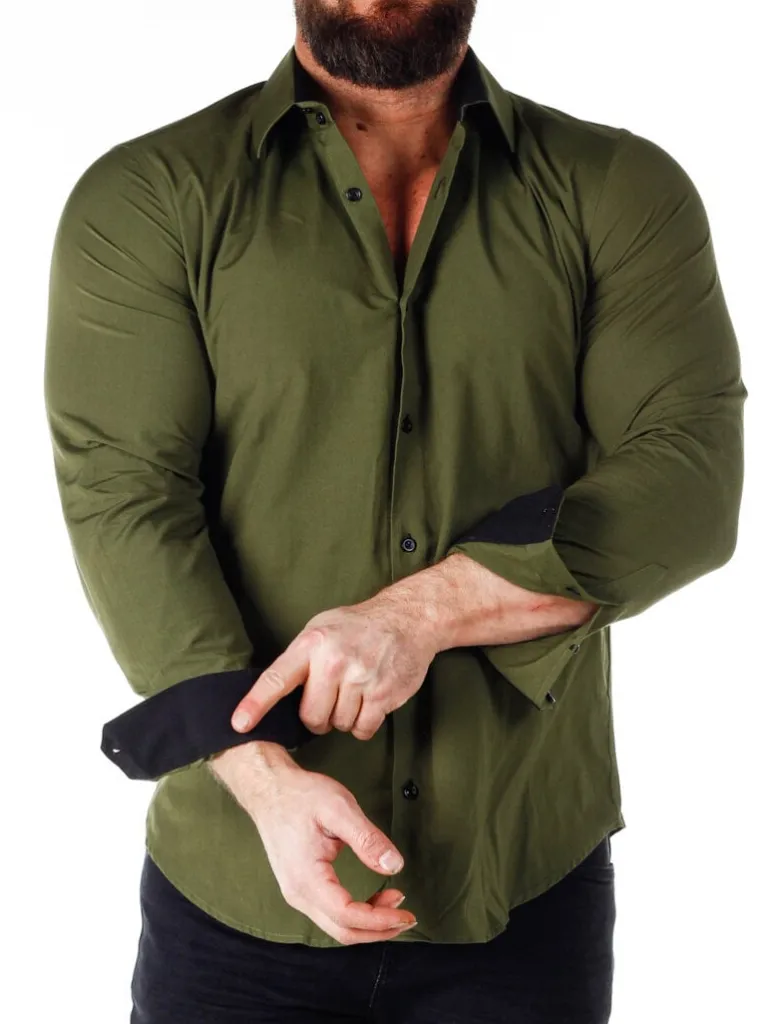 Grøn Skjorte I En Slim Fit-Model Fra Rusty Nealbomuldsskjorte I En Bekvem Model, Som Er Noget Stretchig. Grøn Base Med Knapper, Indvendigave Og Enderne Af Ærmerne I En Kontrastfarve. En Smallere Model Med Afrundet Linning Forneden Og Med Forstærketave, Som Holder Formen. Findes I Flere Farver!