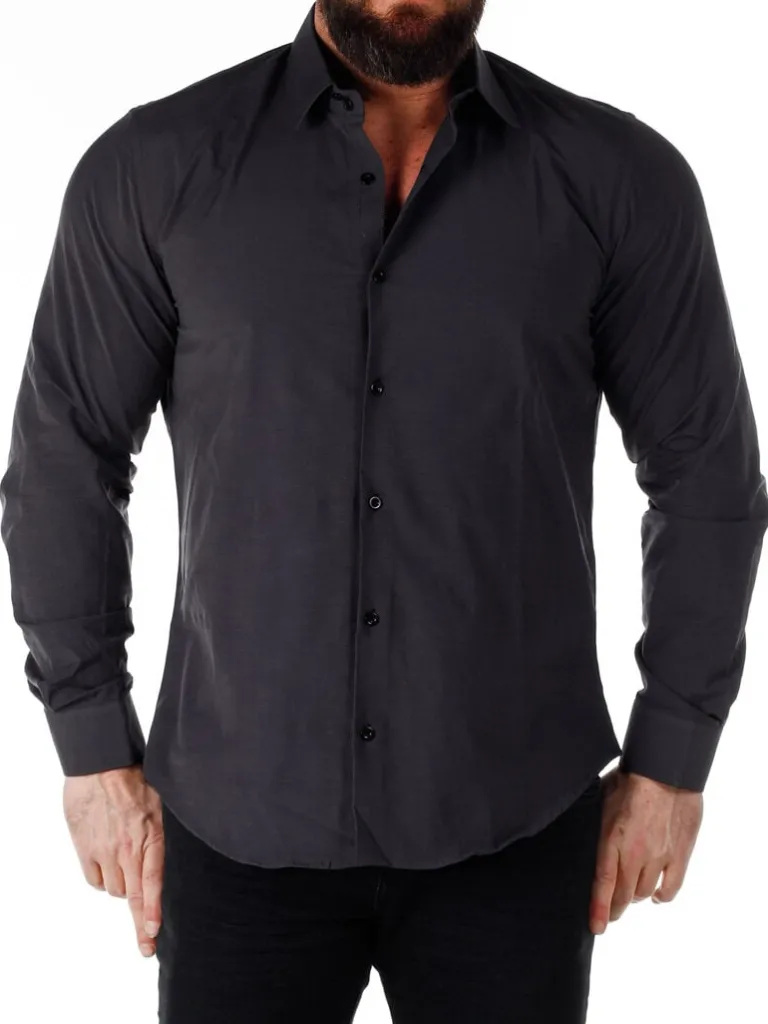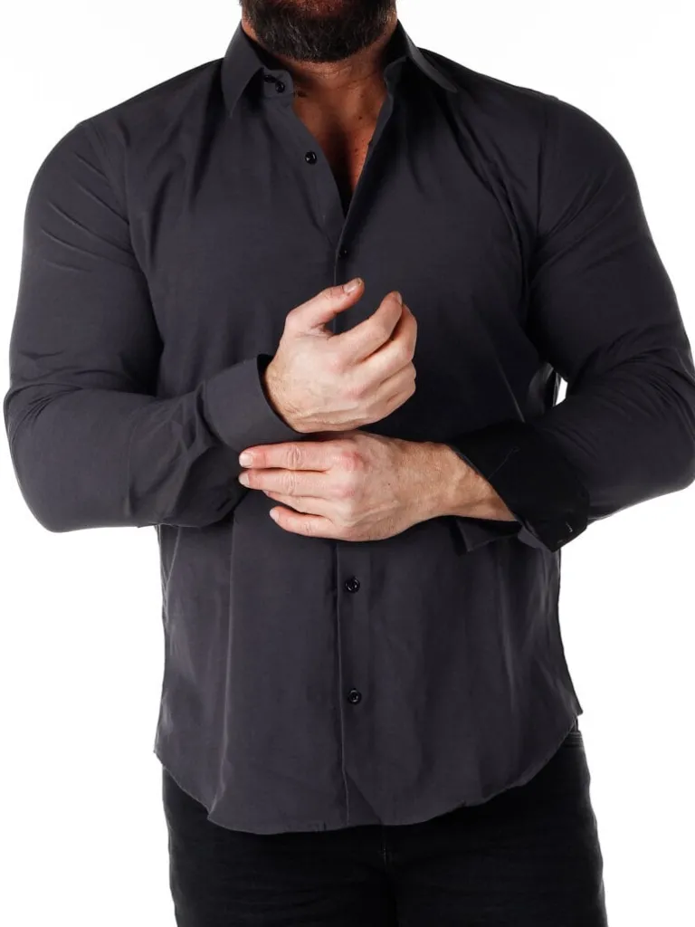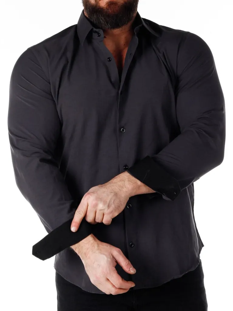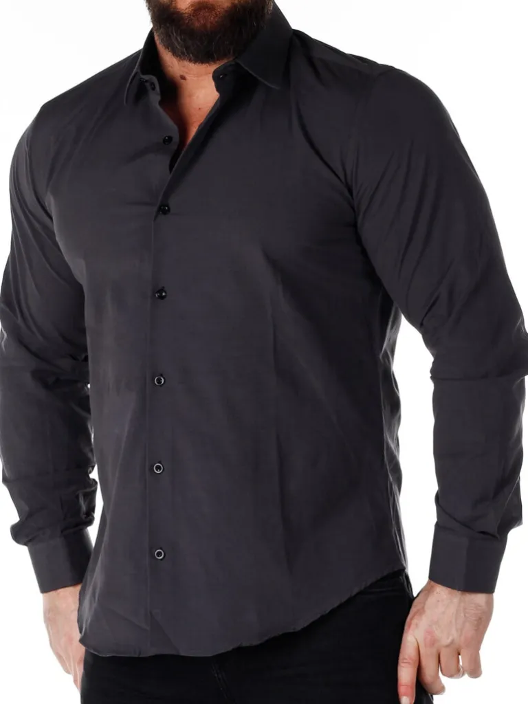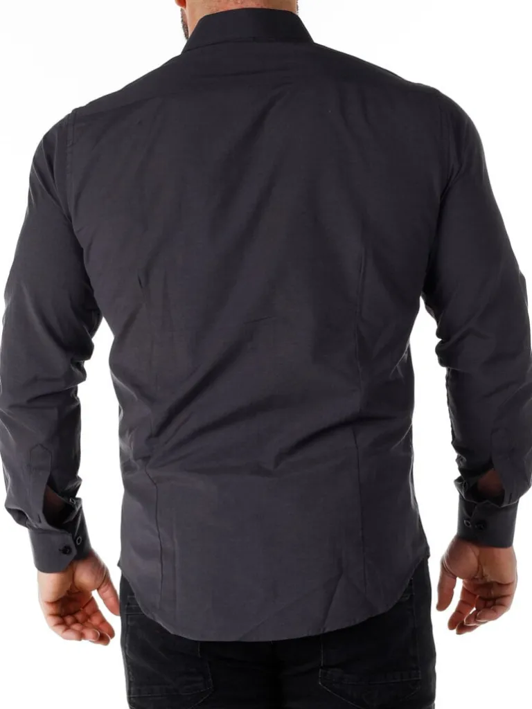 Mørkegrå Skjorte I En Slim Fit-Model Fra Rusty Nealbomuldsskjorte I En Bekvem Model, Som Er Noget Stretchig. Mørkegrå Base Med Knapper, Indvendigave Og Enderne Af Ærmerne I En Kontrastfarve. En Smallere Model Med Afrundet Linning Forneden Og Med Forstærketave, Som Holder Formen. Findes I Flere Farver!
