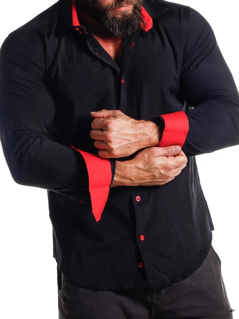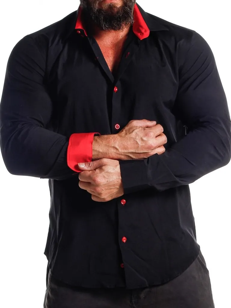 Sort Skjorte I En Slim Fit-Model Fra Rusty Nealbomuldsskjorte I En Bekvem Model, Som Er Noget Stretchig. Sort Base Med Knapper, Indvendigave Og Enderne Af Ærmerne I En Kontrastfarve. En Smallere Model Med Afrundet Linning Forneden Og Med Forstærketave, Som Holder Formen.