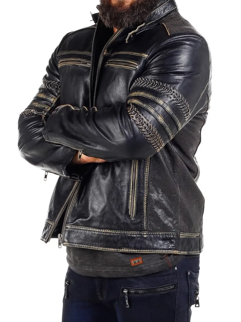 Vintage-Inspireret Skindjakke I Ægte Bøffelskind – Designet Og Producert Af! Solid Ogaftig Skindjakke I Sort Med Dis…