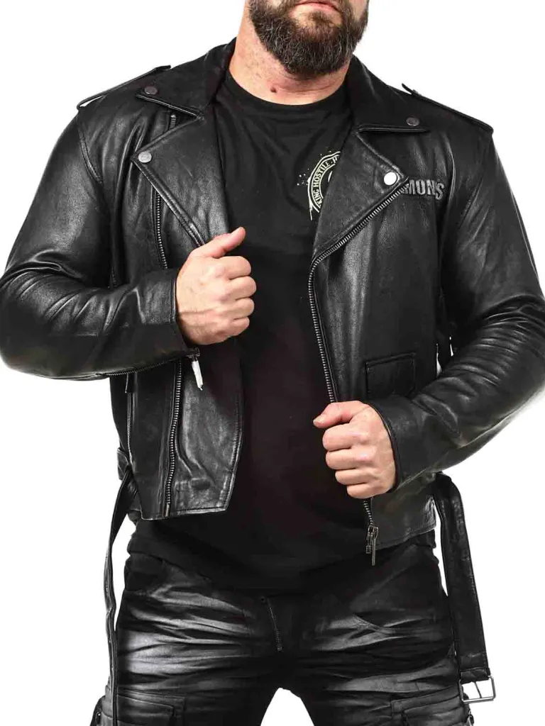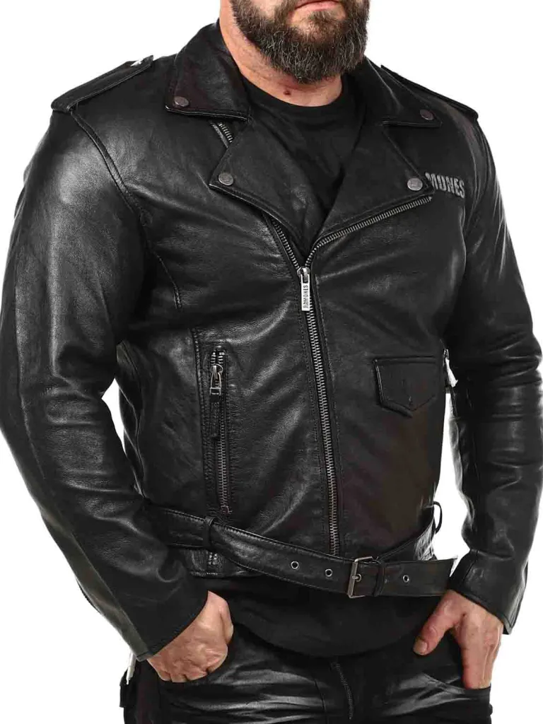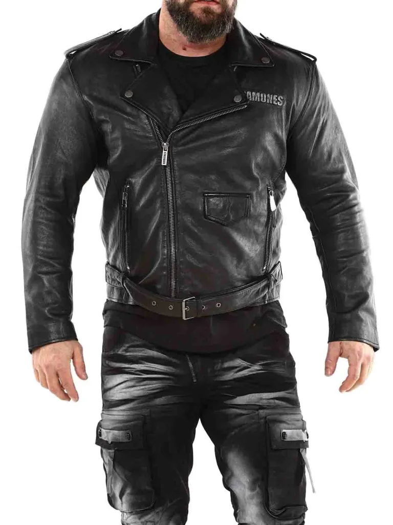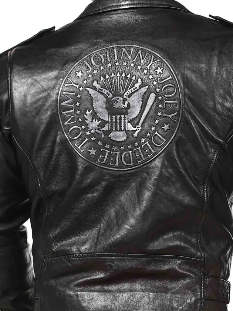 Ramones Læderjakke Fra Gipsyflot Jakke Med Et 3D-Tryk På Både For- Og Bagsiden. Den Har En Lynlås For Enden Af Ærme…