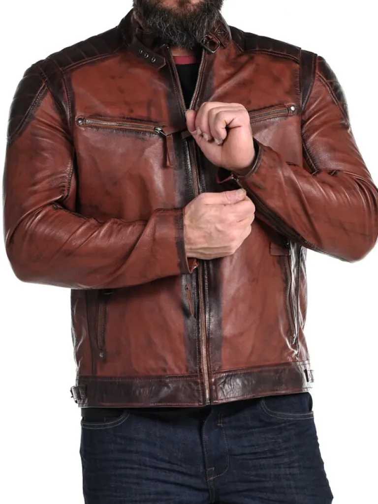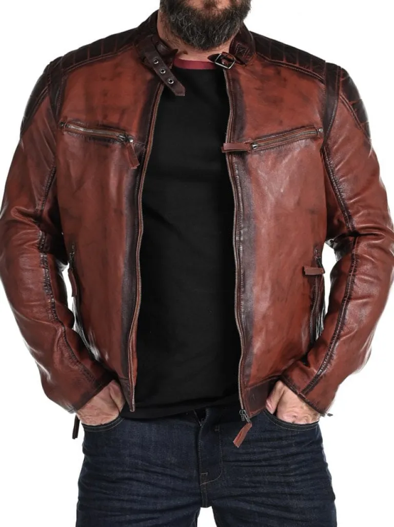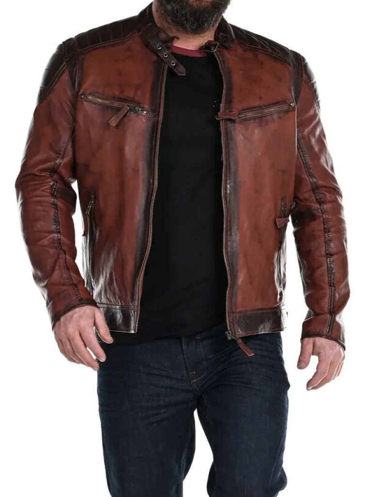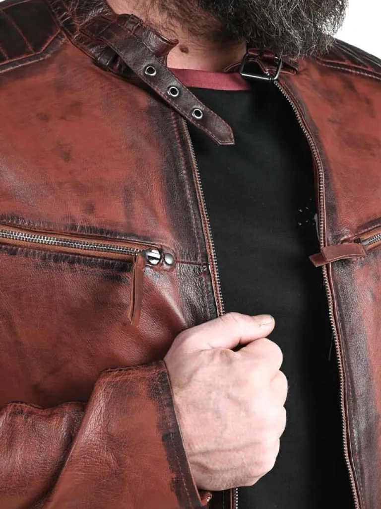 Bikerlæderjakke Fra jakke I Rødbrune Nuancer, Som Giver Et Flot Vintage Look. Den Har Lynlås For Enden Af Ærmerne Samt Spænder På Hver Side, Så Du Kan Spænde Den Ind Til Den Rette Bredde. Der Findes Fire Lommer Fortil, Der Alle Kan Lukkes, Og Hertil Kommer To Indvendige Lommer. Dette Er En Kvalitetsjakke, Der Kun Findes Hos !