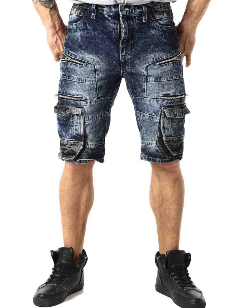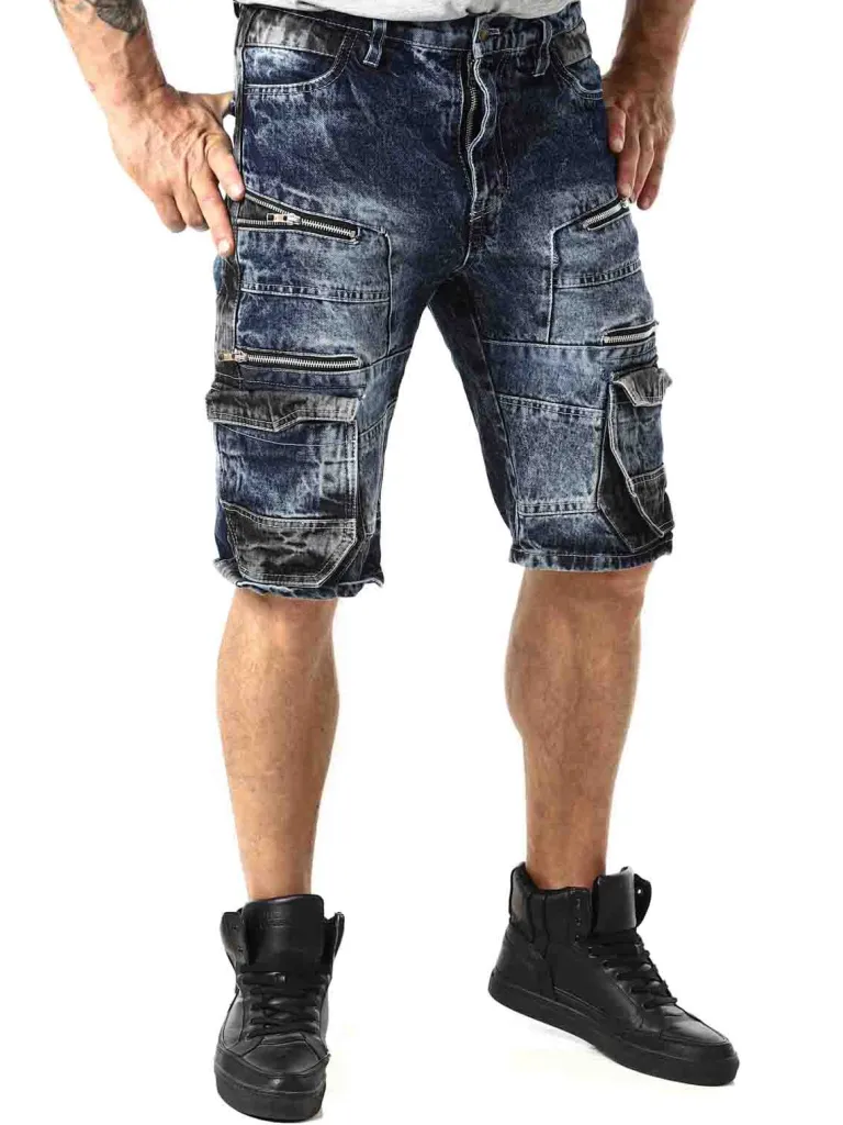 Cargoshorts Fra shorts I En Blanding Af Blå Og Sort Denim. De Har Flere Lommer, Og Er Designede Med Lynlåse Fortil, Der Giver Mere Attitude. Disse Unikke Jeansshorts Finder Du Kun Hos Os!