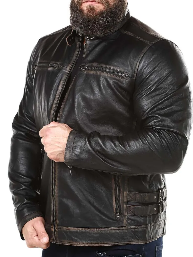 Bikerskindjakke Fra sort Jakke Med Brune Nuancer, Som Giver Et Flot Vintagelook. Der Findes En Lynlås I Ærmernes Slutning Samt To Spænder På Hver Side, Så Du Kan Justére Bredden Forneden, Så Den Bliver Helt Rigtig. Der Findes Fire Lommer Fortil, Der Kan Lukkes Og Hertil Kommer To Lommer Indvendigt. Dette Er En Skindjakke I En God Kvalitet, Som Du Kun Finder På .