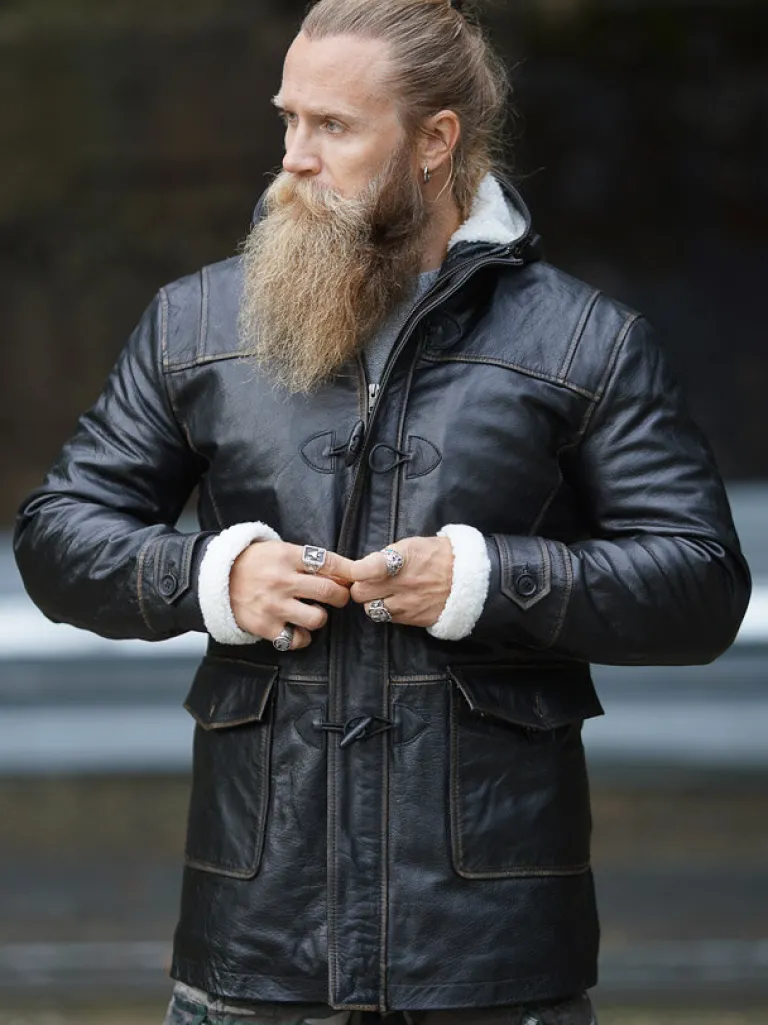 Eksklusiv Foret Læderjakke Frasort Læderjakke Med Fór Og Hætte. Dette Er En Unik Jakke, Der Er Designet Til Vores Ku…