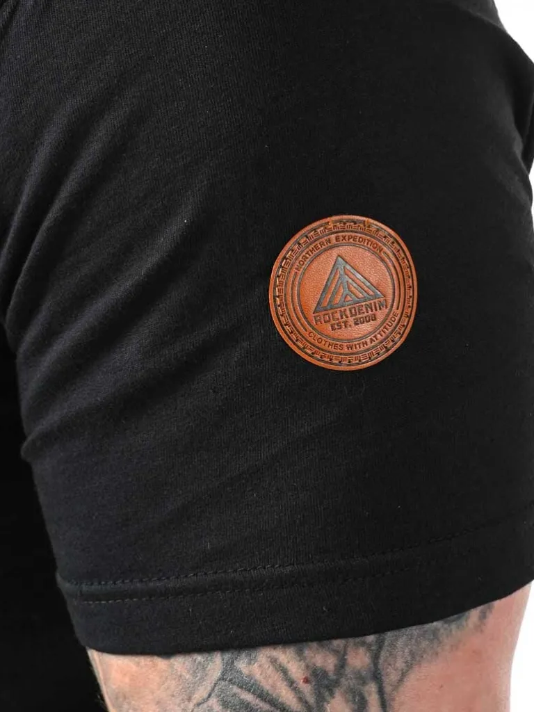 T-Shirt Med Knapper Fra her Har Vi Fremstillet Vores Egen T-Shirt I 100 % Bomuld. Den Har En Klassisk Pasform, Og Er Designet Med En Knapåbning Fortil. En Lap, Der Kommer I En Imitation Af Læder, Ses På Venstre Ærme.