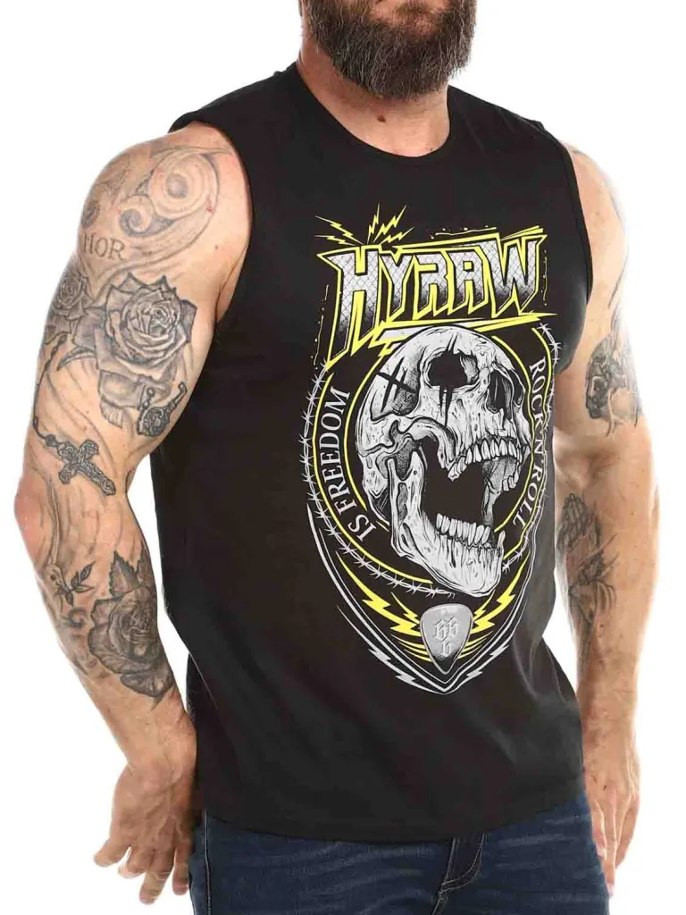 Tanktop Fra Hyrawcool Tanktop I 100 % Bomuld Med Et Logo Og Et Motiv I Form Af Et Dødningehoved. Dette Er En Elastisk M…