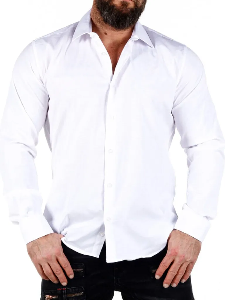 Hvid Skjorte Fra Rusty Nealstilren Skjorte I En Slim Fit-Model Med En Forstærketave Der Holder Formen. Den Lukkes Ved Hjælp Af Hvide Knapper, Og Så Har Den En Afrundet Linning Forneden.
