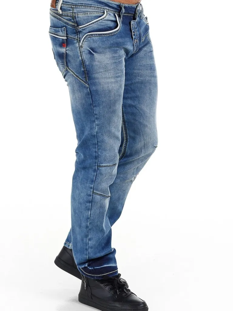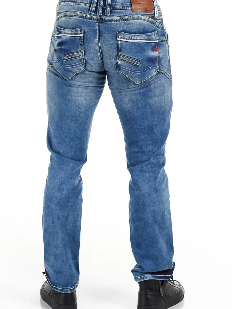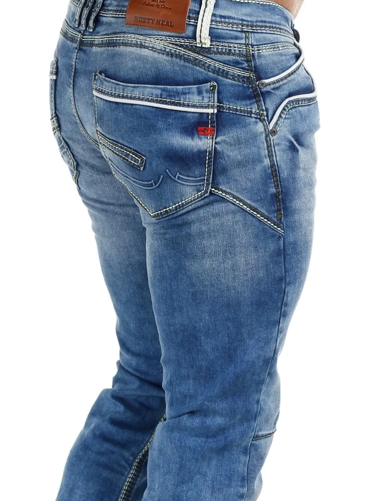 Jeans Med Sømmer Fra Rusty Nealstilrene Blå Jeans I Et Elastisk Stof Af Denim. Lyse Sømme Og Kanter Som Giver En Effe…