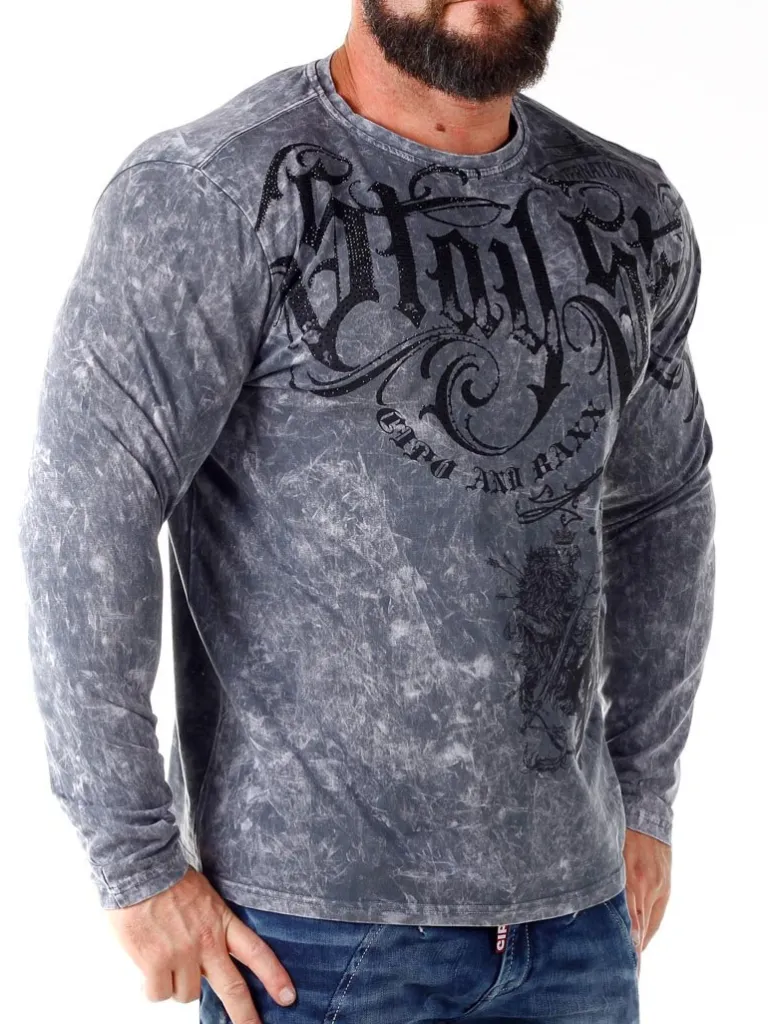 Longsleeve Fra Cipo &Amp; Baxxsyrevasket Trøje Med Rhinstene. Tryk Og Logo Kommer I Sort Og Findes Både Fortil Og Bagp…